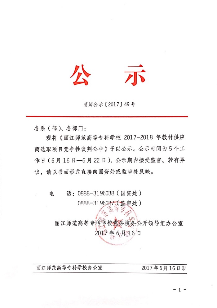 上一条:丽江师范高等专科学校草坪绿化工程竞争性谈判采购项目废标公告 下一条:丽江师范高等专科学校校园中心花园绿化园路建设项目询价采购公告