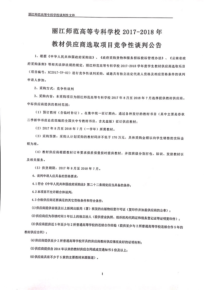 附件:丽江师范高等专科学校2017-2018教材供应商选取项目竞争性谈判招标文件 改.doc