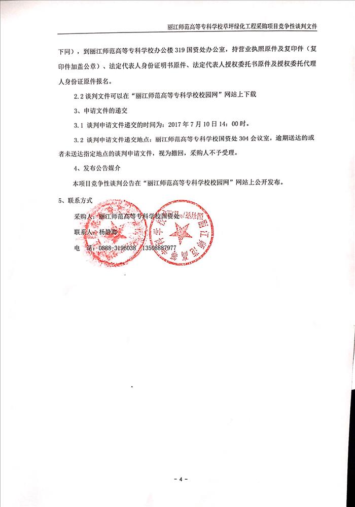 上一条:丽江师范高等专科学校2017-2018学年教材供应商选取项目竞争性谈判结果公告 下一条:丽江师范高等专科学校图书馆主书库一楼地面修缮工程询价采购项目公告(二次)