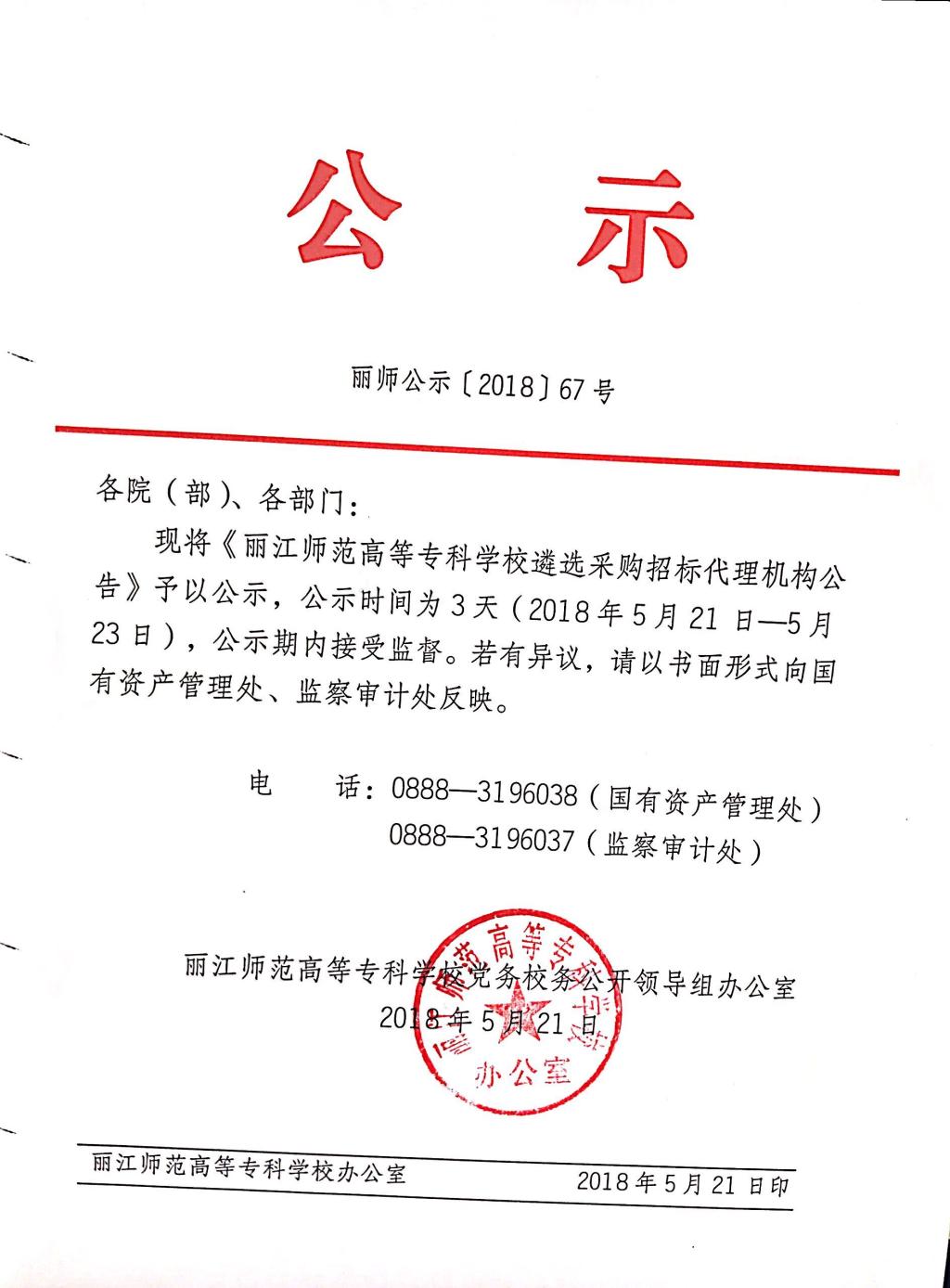 附件:丽江师范高等专科学校遴选采购招标代理机构公告.docx