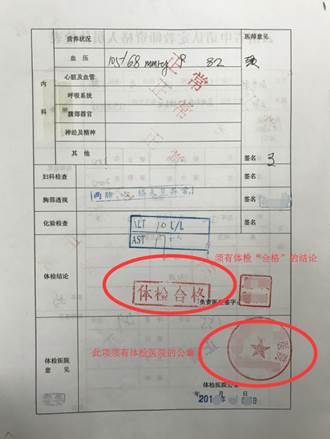 8.主检医师及时综合各科检查结果,全面检查无误后认真作出“合格”或“不合格”的结论,填写在结论栏内。医院根据体检综合情况,对资格认定健康状况下作出“合格”或“不合格”的结论,加盖公章,并通知申请人员取体检表。