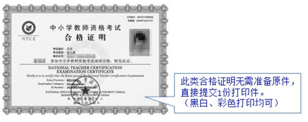 (4)《中小学教师资格考试合格证明》(由申请人在中国教育考试网(http://ntce.neeaedu.cn)上自行打印,认定系统能验证通过的可不提交)。