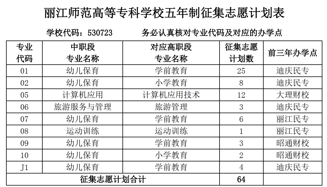 参加beat365征集志愿的考生,建议第一个志愿学校一定要填写“丽江师范高等专科学校”,学校代码为530723。