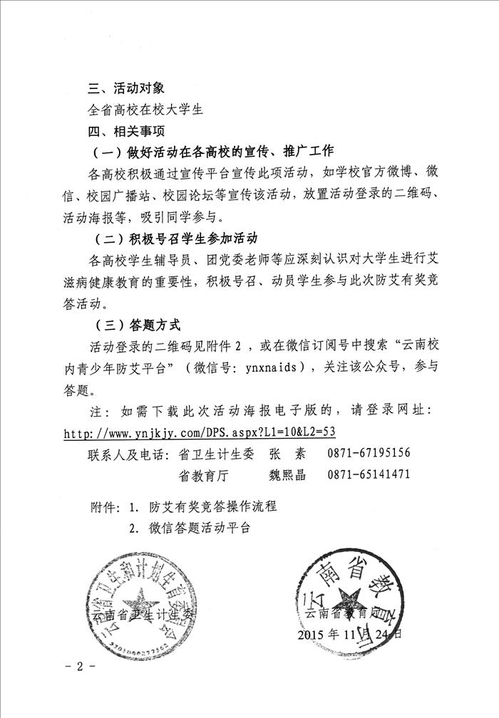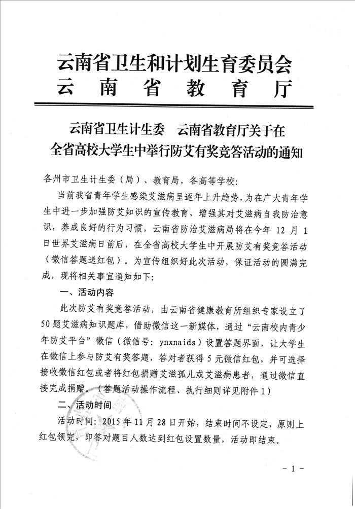云南省卫生计生委 云南省教育厅关于在全省高校大学生中举行防艾有奖竞答活动的通知