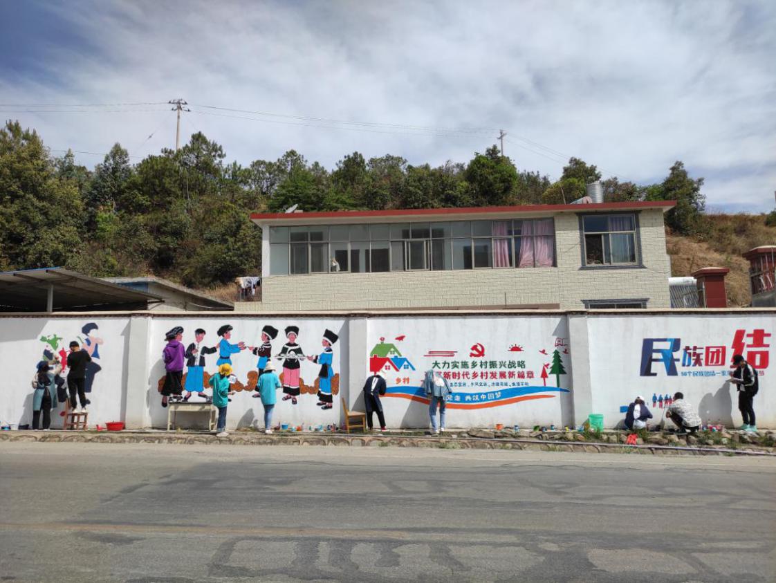 此次联合开展的民族团结乡村振兴文化宣传墙体绘制项目活动,旨在以美丽乡村墙体绘画为切入点,与美术专业的大学生实践团队合作,聚焦乡村振兴战略,弘扬民族文化,进而形成一墙一文化、一墙一创意、一墙一风景、沿村布点的美丽乡村新景象。