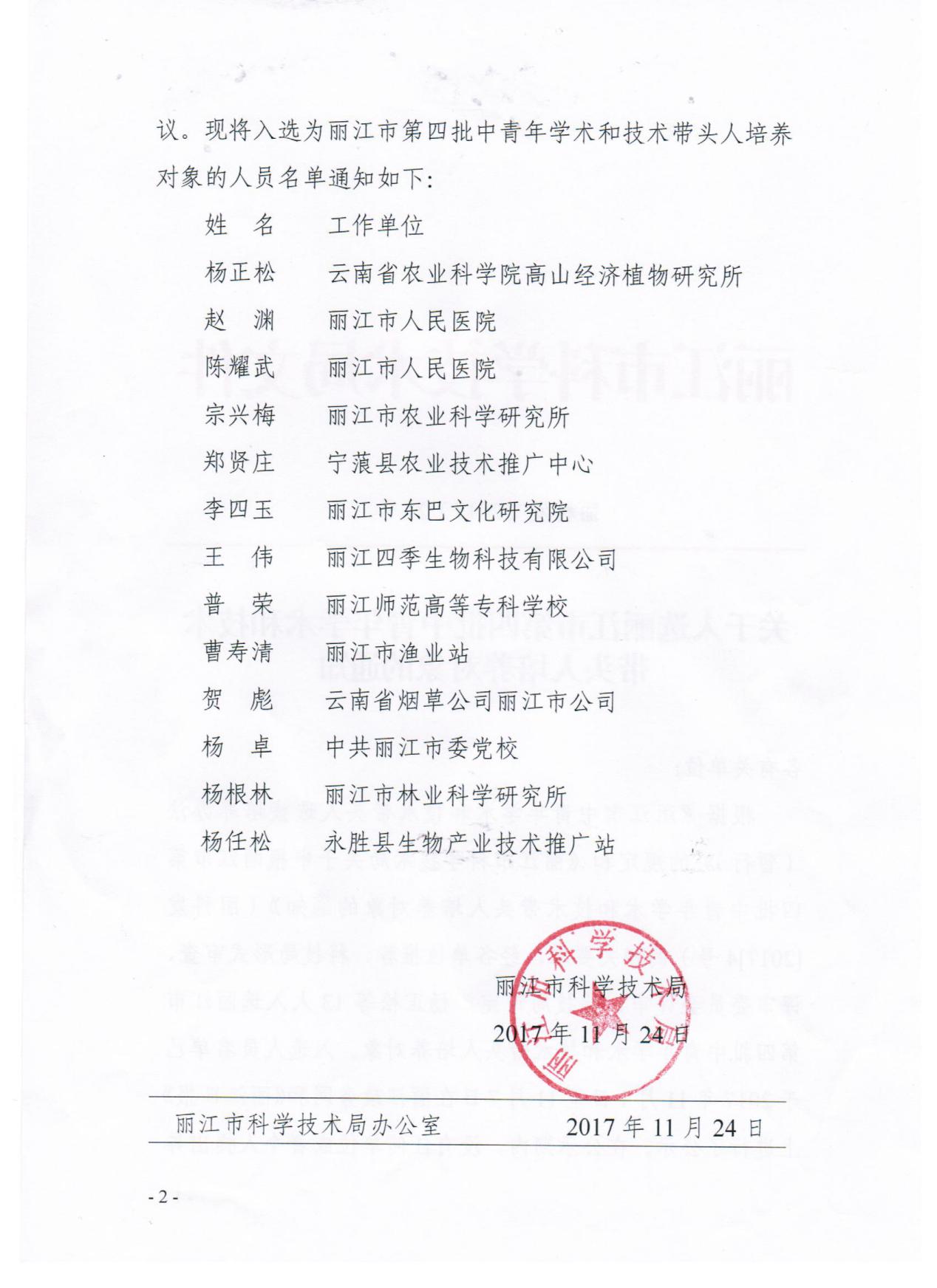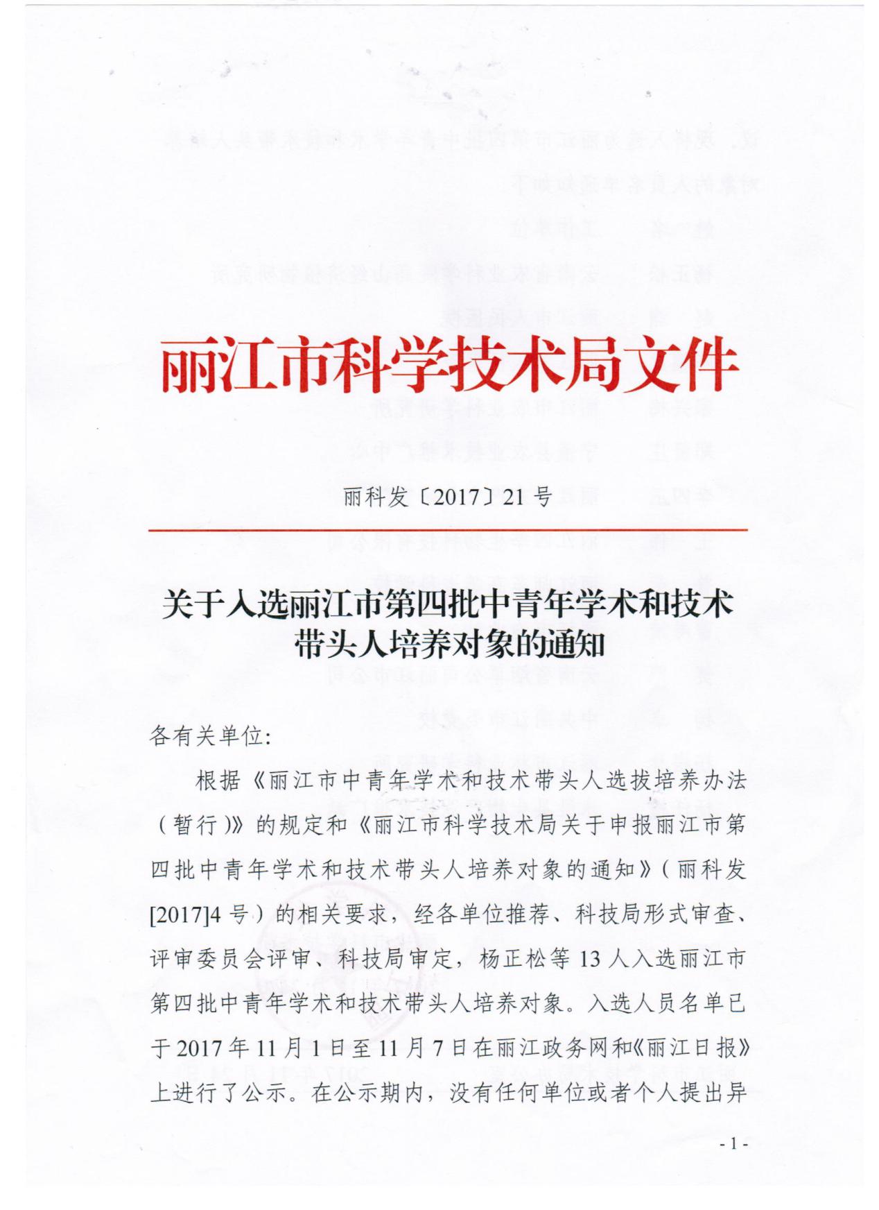 近日,收到丽江市科技局《关于入选丽江市第四批中青年学术和技术带头人培养对象的通知》丽科发[2017]21号文件,beat365国际旅游与工商管理学院普荣老师入选丽江市第四批中青年学术和技术带头人培养对象,丽江全市共13人入选。