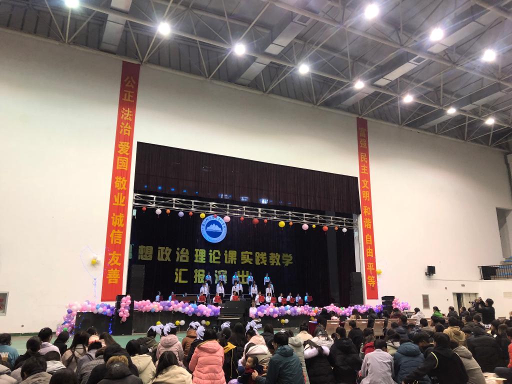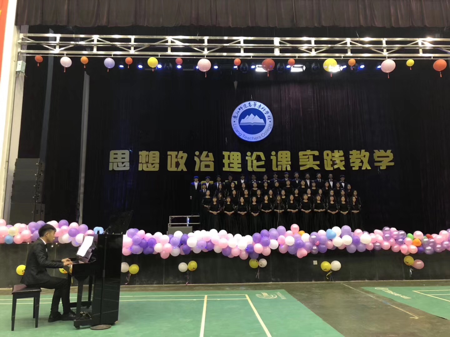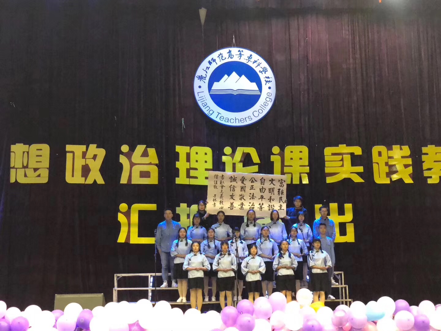 华灯初上,丽江师范高等专科学校体育馆内充满一股热闹气息。2018年12月14日晚七点整,由思政部主办,青年马克思主义学社承办的“2018年思想政治理论课实践教学暨弘扬社会主义核心价值观,培育法治思维汇报演出”活动正式拉开帷幕。学校党委副书记马云飞、校团委书记白杨作为特邀嘉宾,与思政部全体教师及2018级全体学生,均参加了此次活动。本次活动,由丽江师专2018级全体同学精心排演和参与,最终选取了12个班级的共13个节目。同学们纷纷通过舞蹈、歌唱等方式,展现了青春力量、青春风采以及当代大学生的激情活力。