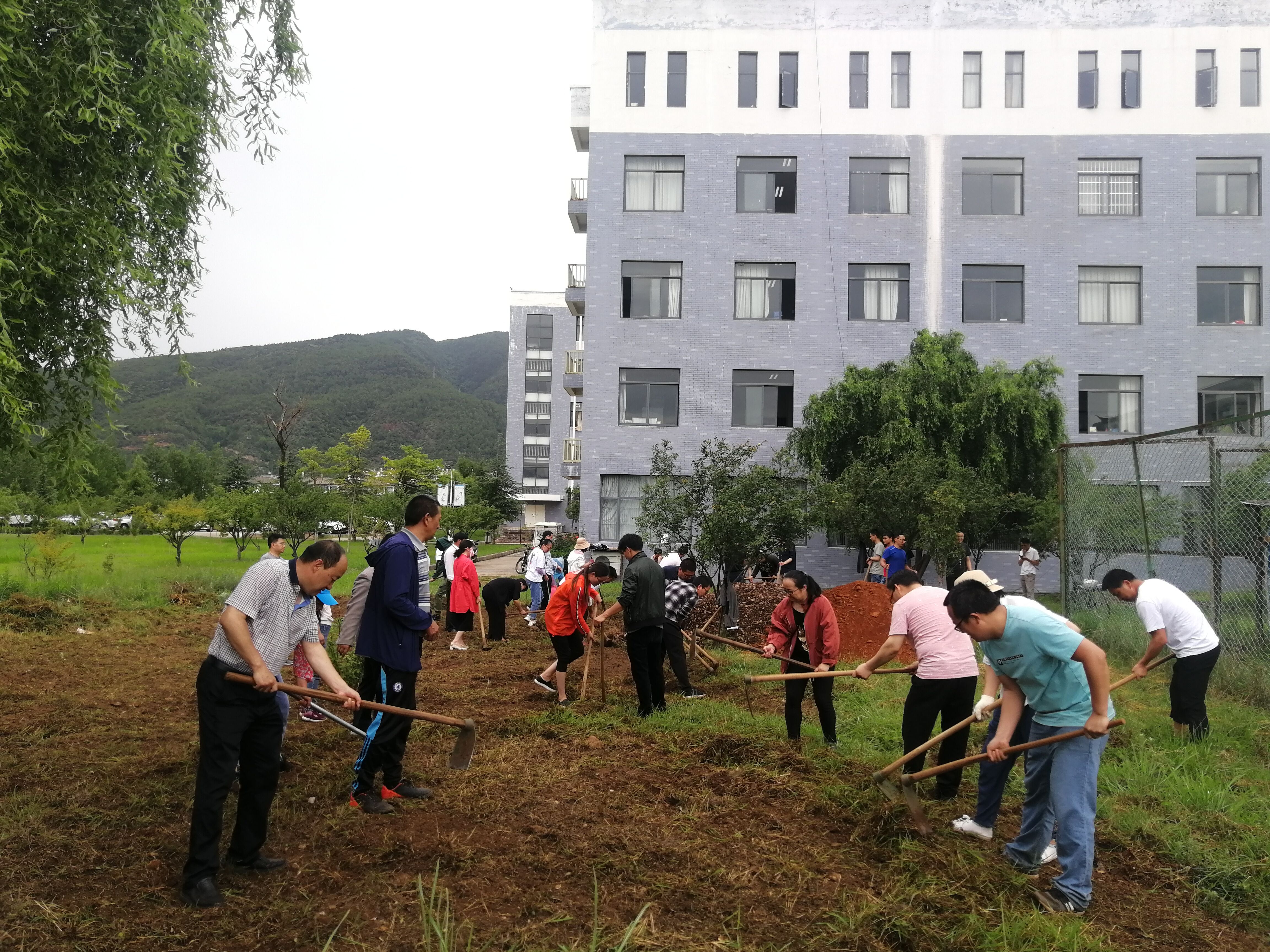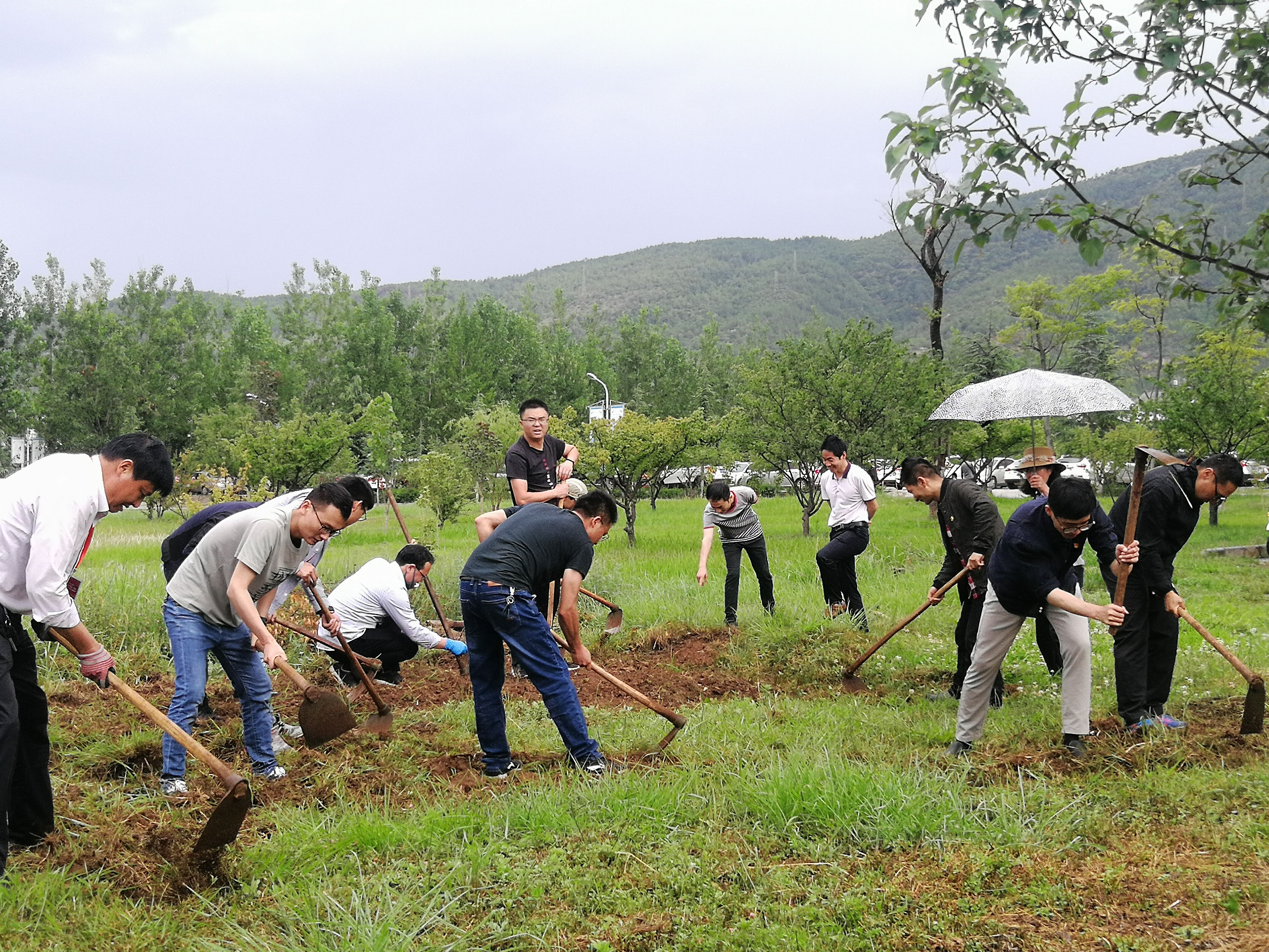 翻土平整活动在各支部书记的带领下如火如荼地展开,男同志挖地翻土,女同志清除杂草,分工明确,团结协作。活动期间一直下着毛毛细雨,但党员同志为了按时完成任务,争先恐后,顺利完成了所分配的任务。