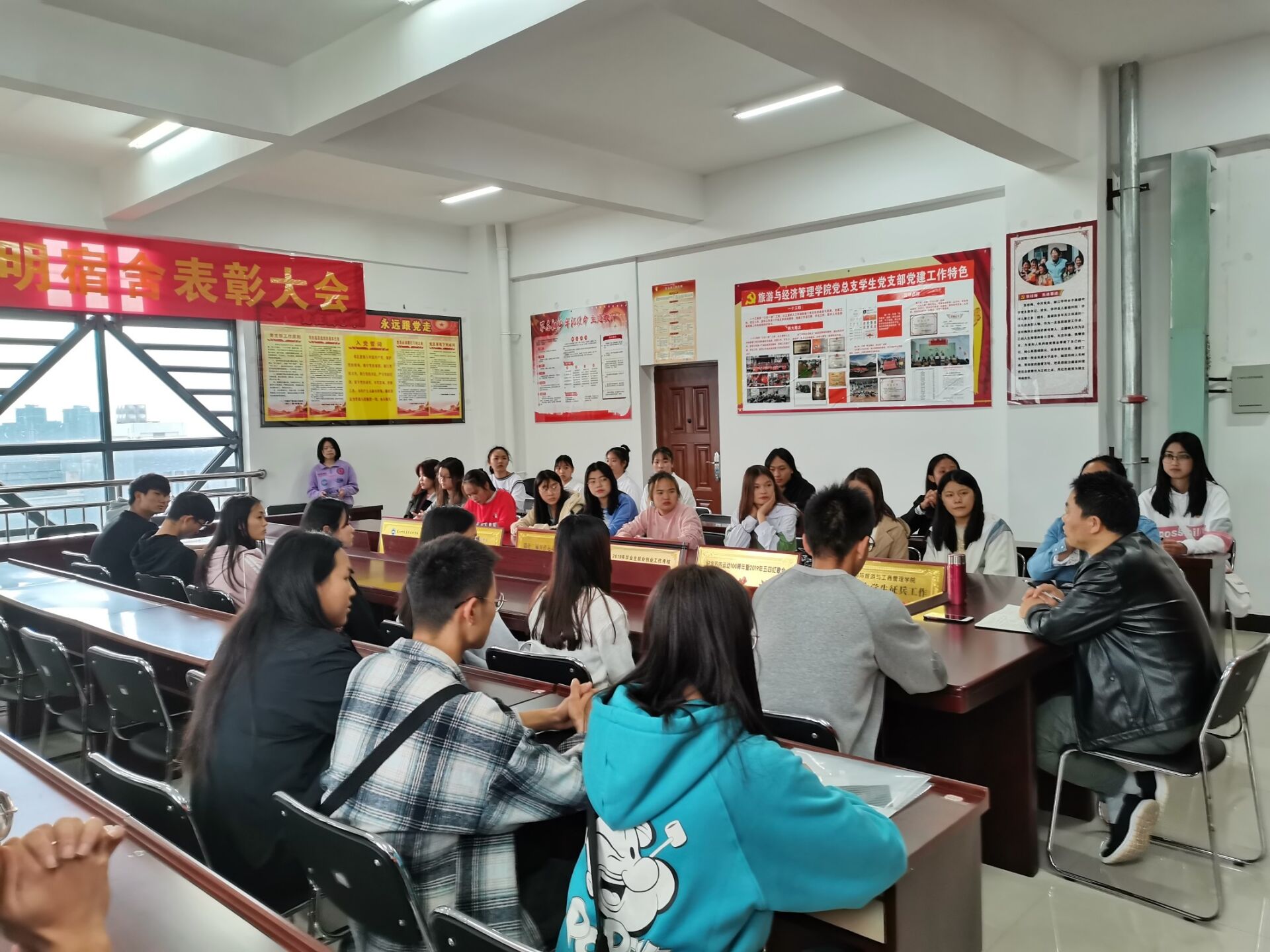 为表彰先进,充分发挥引领和带动示范作用,2020年10月30日下午16:00,旅游与经济管理学院在实训楼615党团活动室举行“创建文明宿舍表彰大会”,学院党总支副书记、团总支负责人朱道平参加并主持会议,学院党总支学生党支部书记、学生科负责人白玉琴及各宿舍长、团学干部近50余人参加会议。