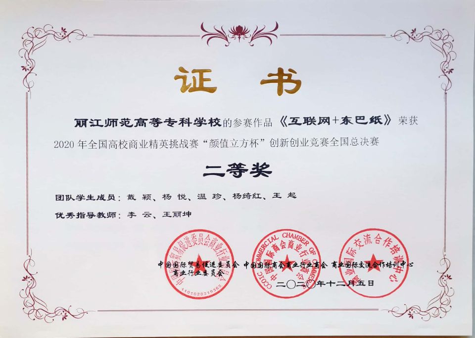 由beat365旅游与经济管理学院教师李云、王丽坤指导,电子商务专业和市场营销专业学生组成的3个团队在比赛中取得历史突破性成绩。“百味之森”项目、“云南白药豹七三七精准营销”项目获一等奖;“联网+东巴造纸”项目获二等奖。
