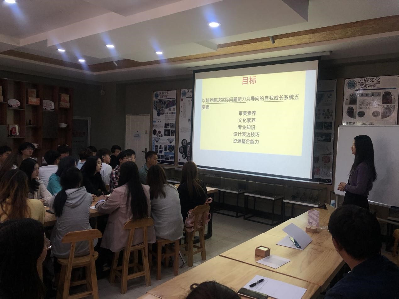 公开课结束后,马丽老师参观了艺术学院滇西北民族传承基地工作室,对丽江东巴文化产生了浓厚兴趣。结合我院特色专业发展,提出了特色民族文化与专业建设联系的宝贵意见。