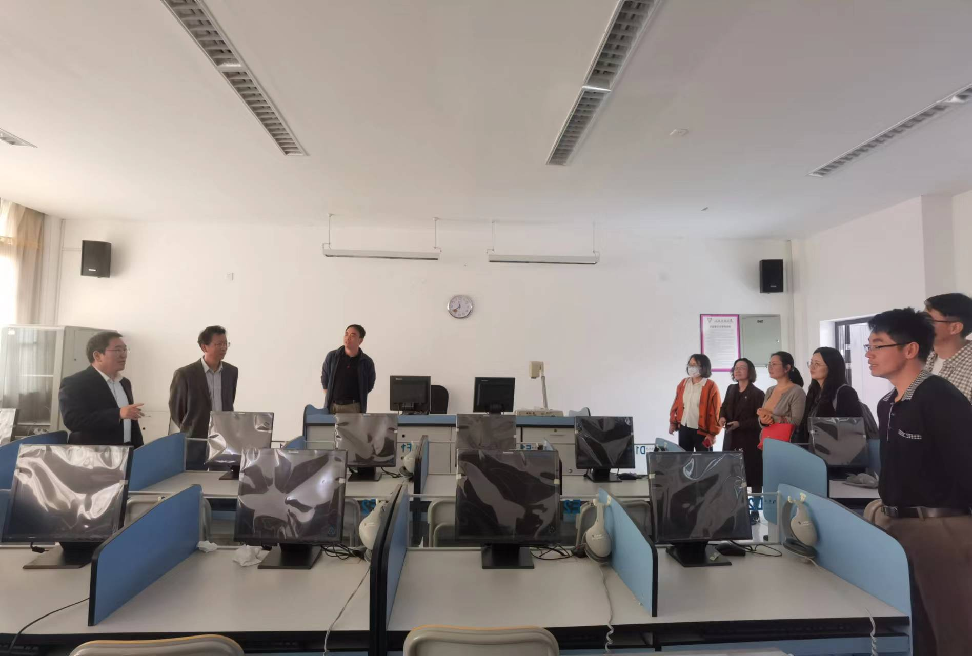 接着,在冯智文院长等人的陪同下,参观了云师大外国语学院的语言室、同声传译实训室、外文资料室和档案室等。