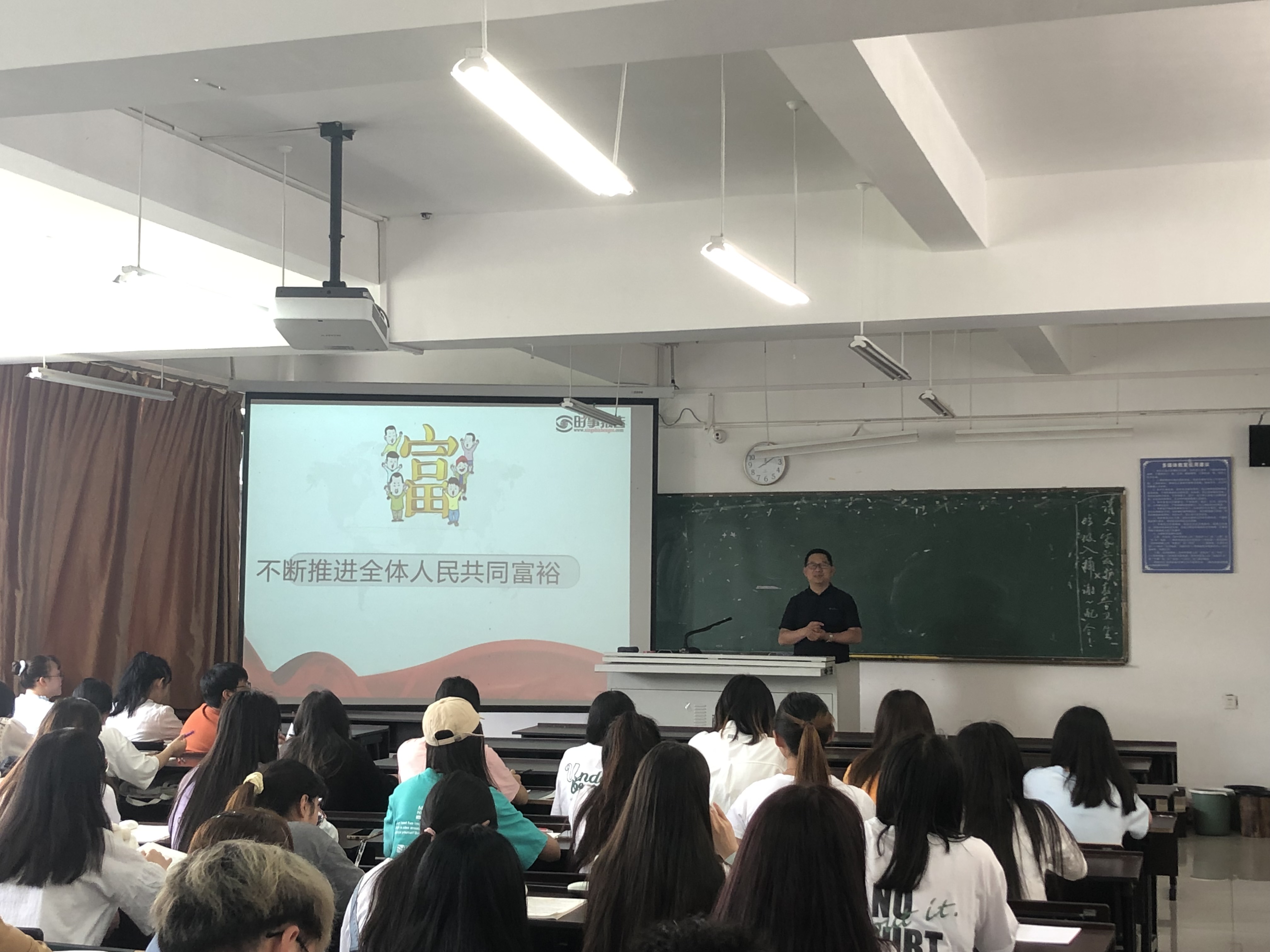 6月22日,学校党委副书记彭鸿昌在教学楼425给2020级会计3班学生讲授《不断推进全体人民共同富裕》形势政策课。他从“理解共同富裕的科学内涵”“把握共同富裕的实践途径”“认清共同富裕的未来征程”三个方面,对不断推进全体人民共同富裕专题做了精准解读,对如何理解共同富裕做了深入分析。彭鸿昌寄语同学们,一定要学好自己的专业知识,利用自己的专业知识应用于实践,为社会、为国家多创造财富;勤学善思,内化思想,提升能力,才能在更大程度上服务人民,奉献社会。