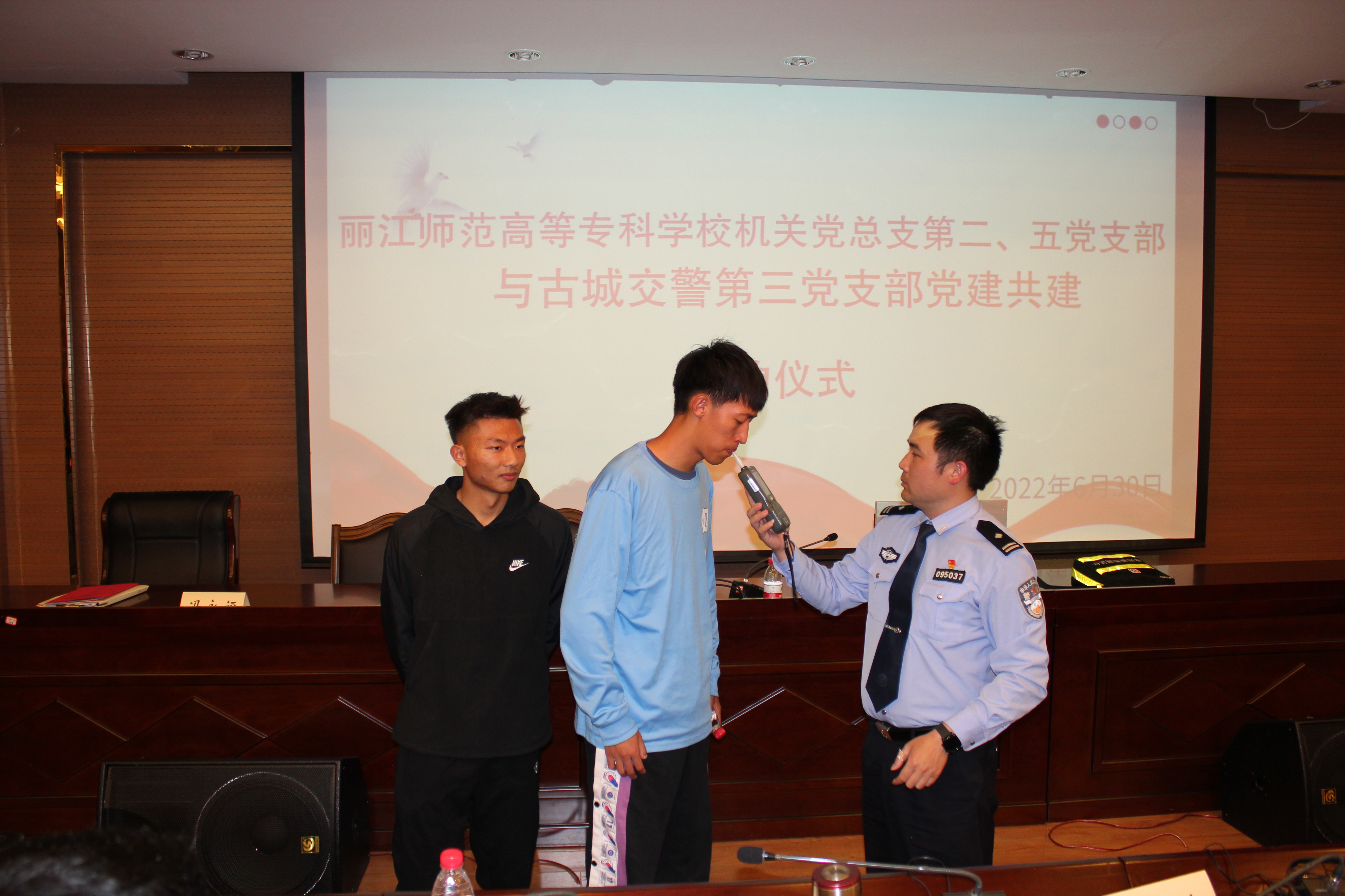 为实现党组织优势互补,党建促进业务,充分发挥党支部的战斗堡垒作用和党员先锋模范作用,努力构建“资源共享、优势互补、互相促进、共同提高”的党建共建工作格局,6月30日下午,机关党总支第二、第五党支部与丽江市公安局古城分局交警大队第三党支部开展支部结对共建活动。学校纪委书记李淑良同志以普通党员身份参加活动,三个支部全体党员、学校后勤服务从业人员、学生代表共120余人参加活动。