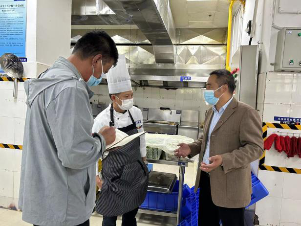 张兰胜深入食堂后厨检查食品加工操作、食材储存仓库、餐具清洗消毒等情况,对学校食品留样情况作了重点询问和检查,了解食堂卫生和餐饮安全情况。