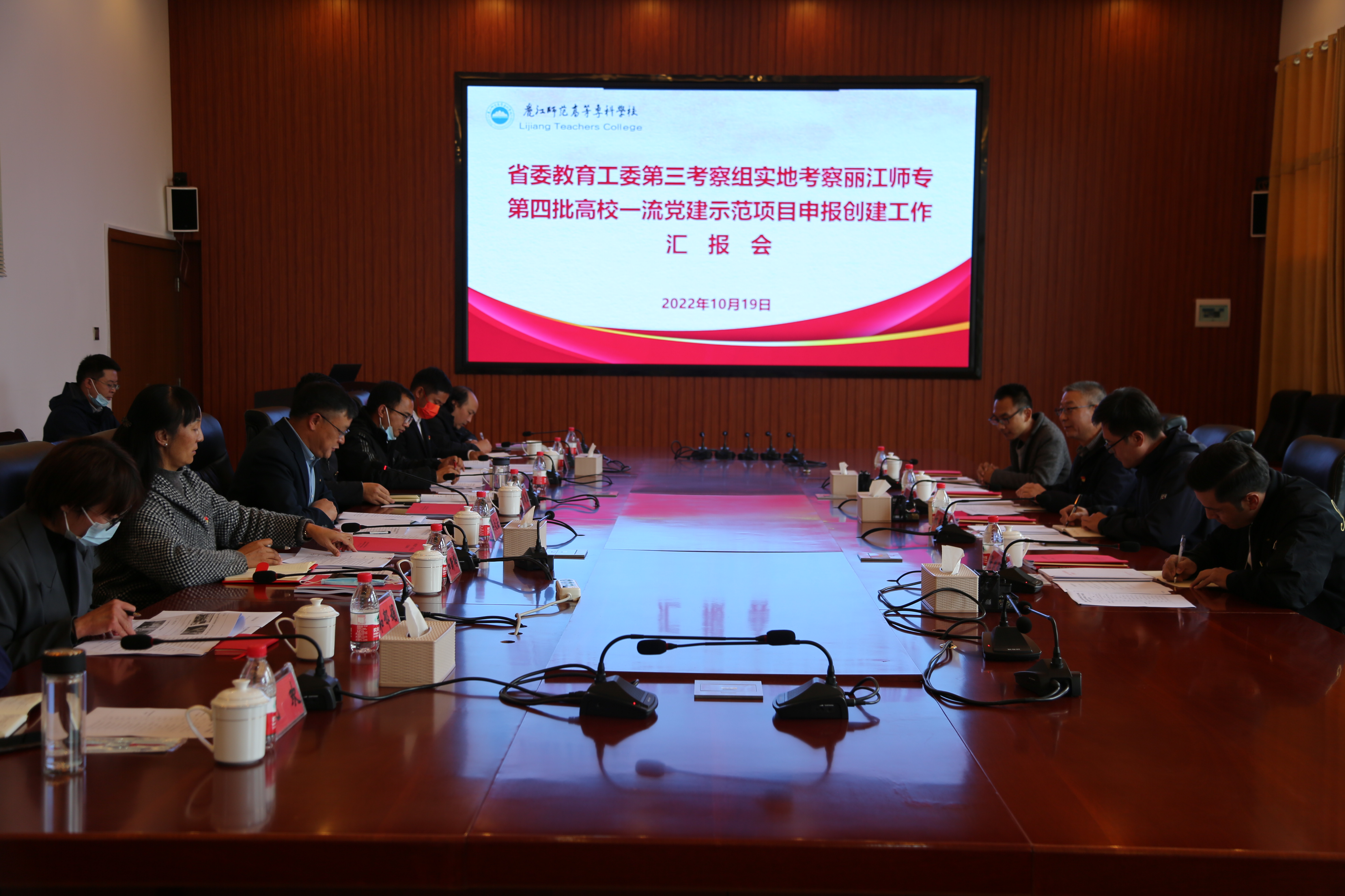 会上,考察组一行观看了学校宣传片。毕天云以“'大党建'立根、'大思政'铸魂,以高质量党建引领高质量发展”为题,从学校党建基本情况、为什么做、做了什么、怎么做的、做得如何、下一步工作打算等方面向考察组汇报了创建一流党建示范高校党委工作情况。彭鸿昌汇报了校党委创建一流党建品牌项目“以张桂梅先进事迹引航构建五位一体思政教育模式”工作情况,介绍了学校通过“五个融入”,将张桂梅先进事迹融入思政课程、融入课程思政、融入师德教育、融入科学研究、融入第二课堂取得的成效。随后考察组通过集体座谈,从党建如何发挥作用引领学校高质量发展、党建品牌打造等方面与参会人员进行了深入访谈。