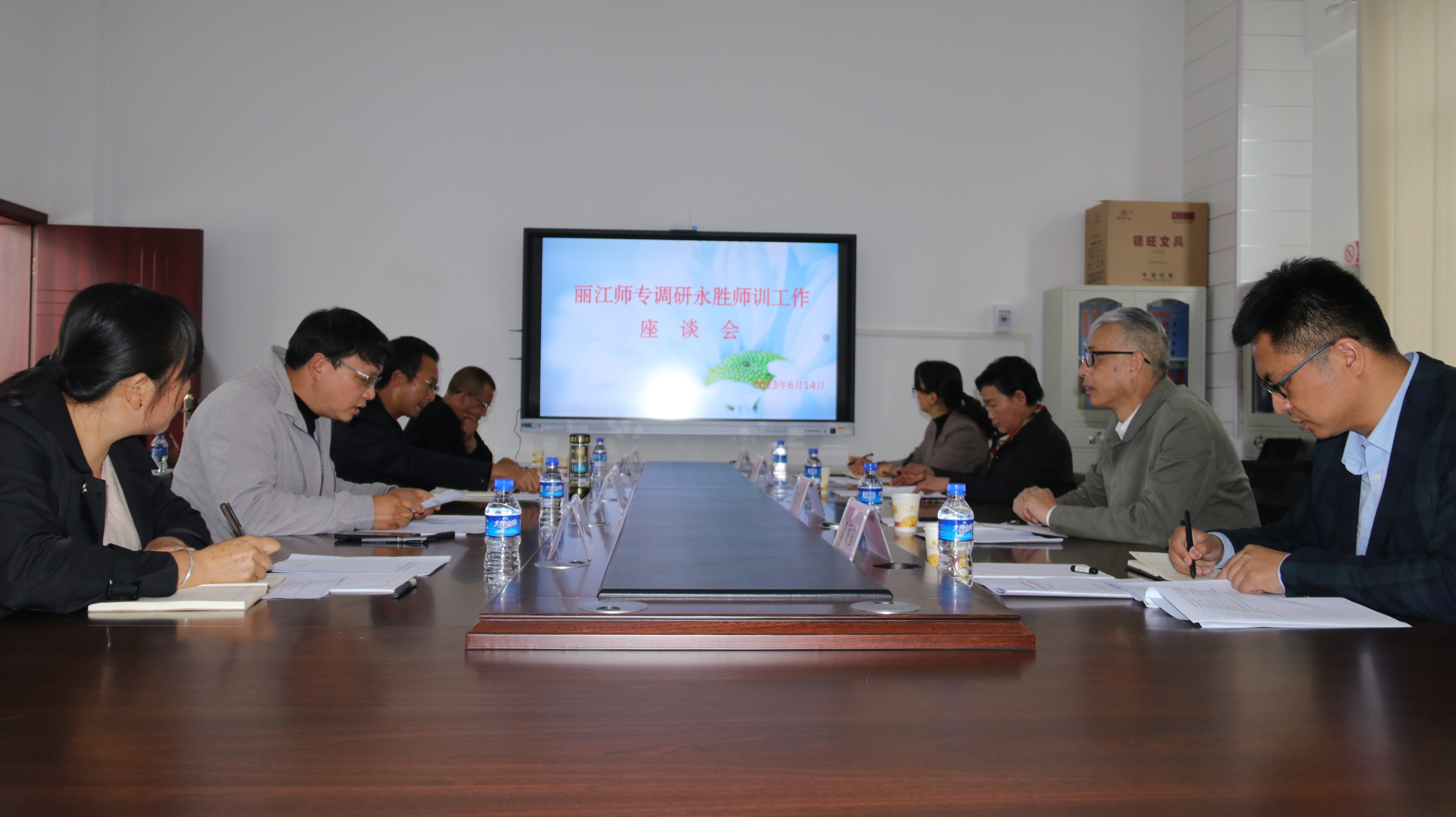 永胜县教育体育局局长金发斌、教师发展中心主任高文清、教师发展中心副主任尹荣等参加座谈会。会上,调研组向与会人员全面介绍了beat365入选“师范教育协同提质计划”后相关工作的开展情况,详细了解永胜县基础教育的发展情况,师资培训的现状、问题和需求。双方就学校面向永胜县将实施的2022年中小学幼儿园“国培计划”云南省高校区域协同帮扶培训项目进行了深入探讨和交流。