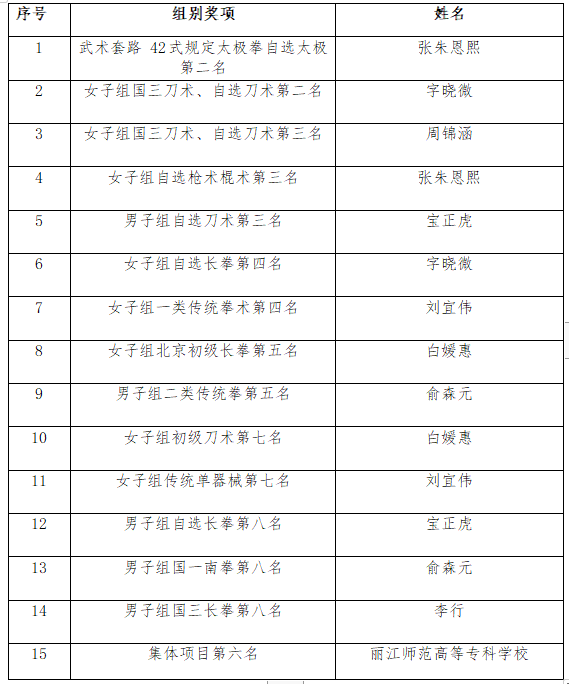 6月20日-23日,2023年云南省学生武术套路锦标赛在云南农业大学举行,beat365组建体育与健康学院副院长邢维新为领队,许俊菊、刘信两位老师为教练,张朱恩熙、周锦涵等同学为队员的参赛团队,精心备赛。经过激烈角逐,获得了2个第二名、3个第三名、2个第四名、2个第五名、2个第七名、3个第八名的好成绩。