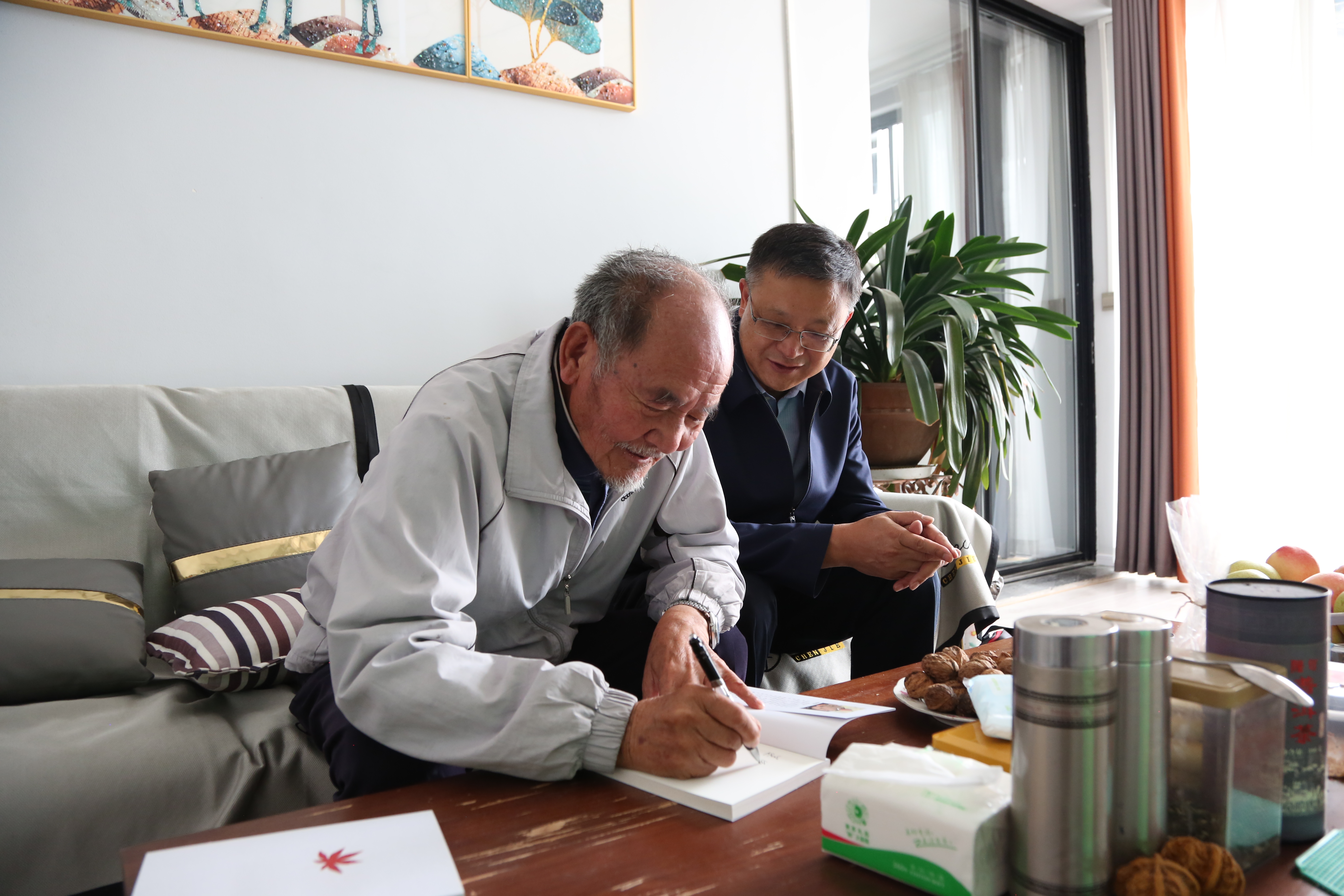 和树本老师说,听到学校一栋栋大楼拔地而起,也经常在离退休教师支部群和学校的公众号里看到学校的变化,校园更美了,他感到非常欣慰和自豪。今年虽然88岁了,但也希望尽自己的绵薄之力,助力学校建设。毕天云代表学校对老同志们对学校发展的关心、支持表示由衷感谢,叮嘱他一定要保重身体,有什么需求及时与学校反馈,学校会全力做好各项服务保障工作。