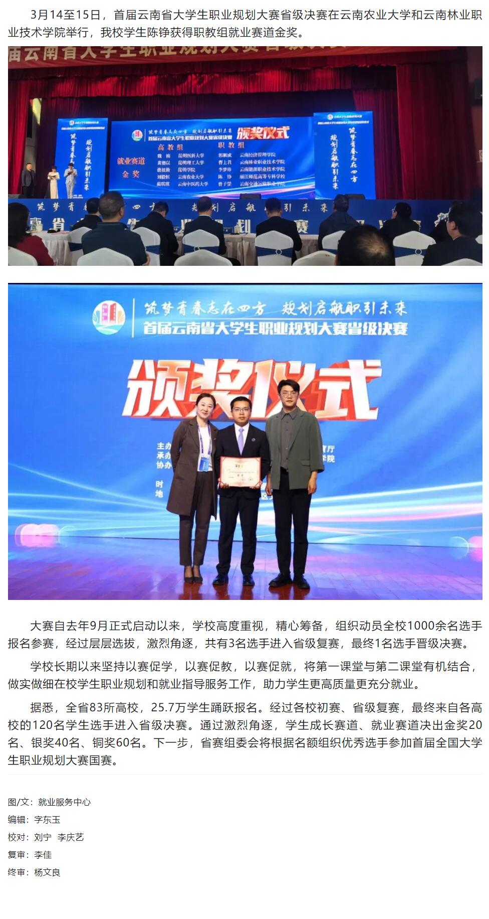 喜讯 | 学校学生在首届云南省大学生职业规划大赛中荣获金奖