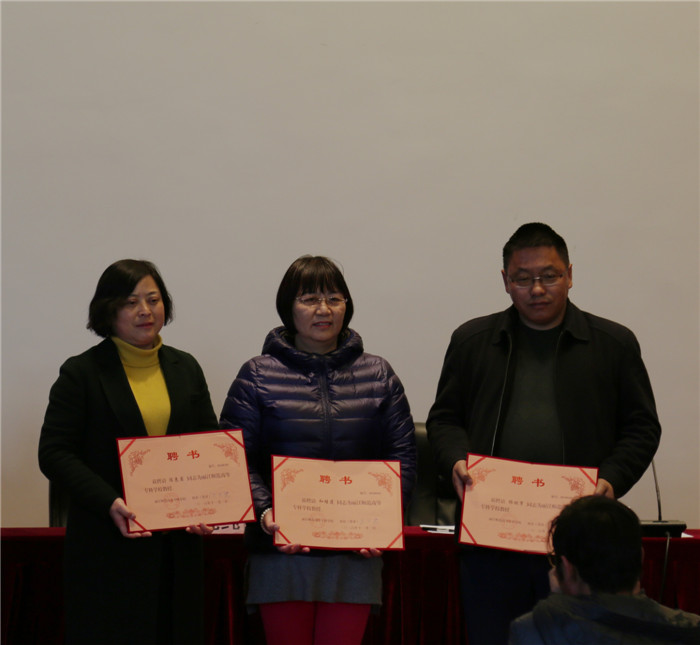 和克纯副校长宣读beat365关于聘任12位同志专业技术职务的通知,3名老师聘任为教授,9名老师聘任为副教授;张洪波校长一一为其颁发了证书。