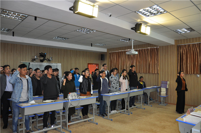 人事处处长李琼带领新进教职工集体宣誓,并为新进教职工颁发了学校规章制度。