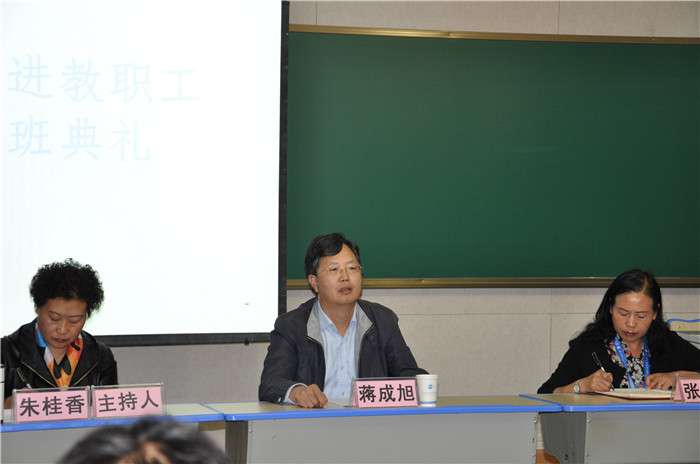 蒋成旭书记讲话,他强调:一要认清自己,找准位置。要有角色意识,把自己当成普通教职工,不要过于高估自己。二要放低身段,埋头苦干。加强个人修养,平心静气,正确对待工作业绩。甘于奉献,学会与领导、同事相处。三要遵规守纪,严于律己,遵守学校规章制度。