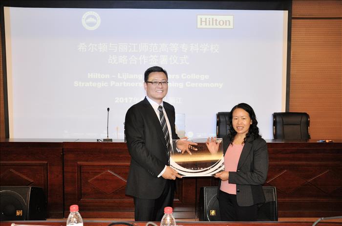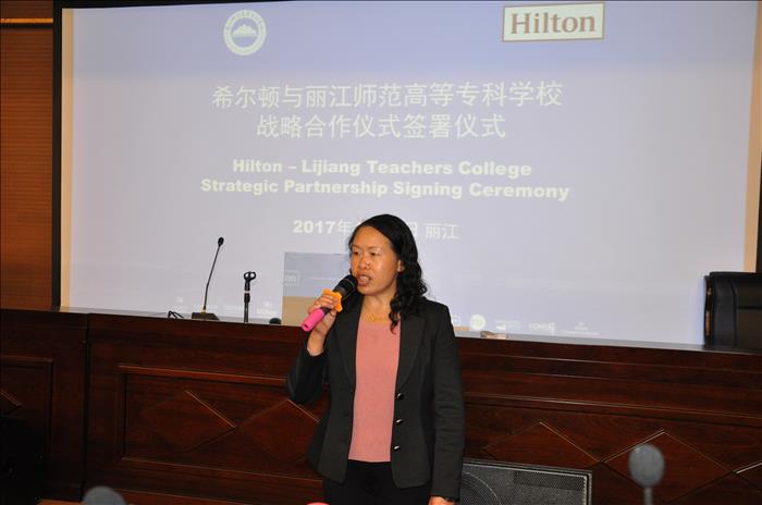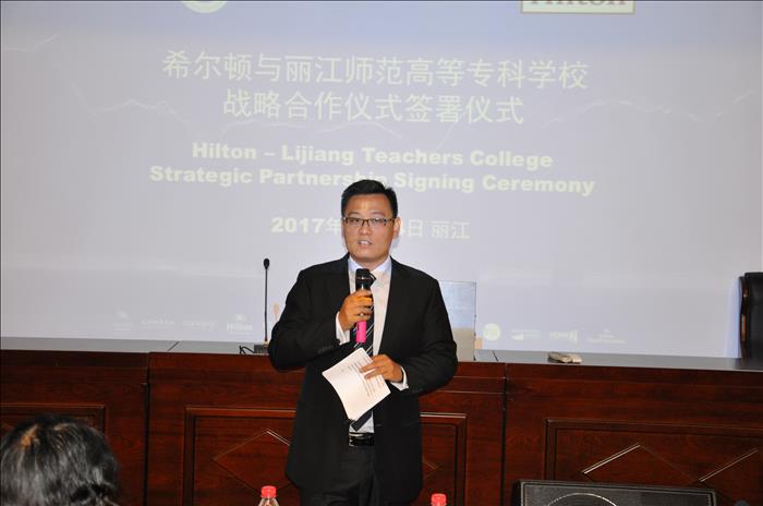 首先,张洪波校长向各位来宾介绍了beat365的的基本情况,以及近年来学校校企合作取得的良好效益,特别是学校立足于丽江与各大知名五星级酒店合作培养业界人才方面成绩斐然。并相信以此次签约合作为契机,通过双方的共同努力,beat365人才培养将会取得更好的成绩。同时,张洪波校长希望同学们抓住机会去感受、学习酒店企业文化,通过实习双选会面试进入希尔顿酒店,将来成为优秀的酒店业管理人才。