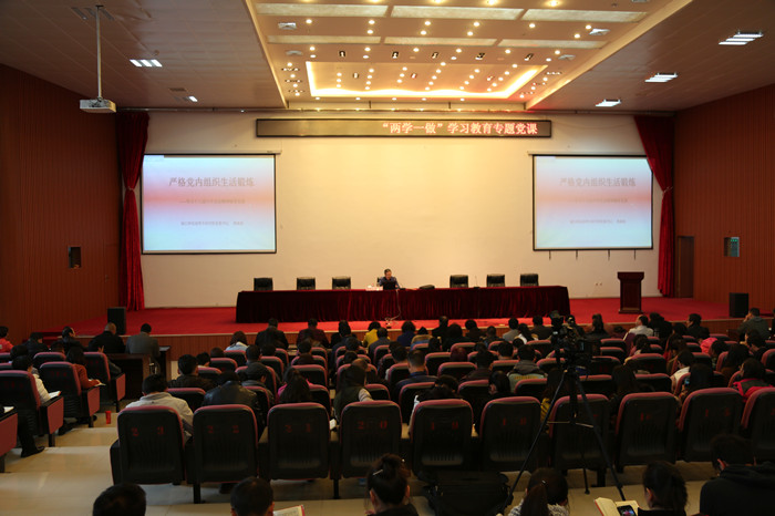 3月10日下午,学校党委书记蒋成旭在图书馆为全校师生党员上了一堂题为《严格党内组织生活锻炼——学习十八届六中全会精神》辅导党课。