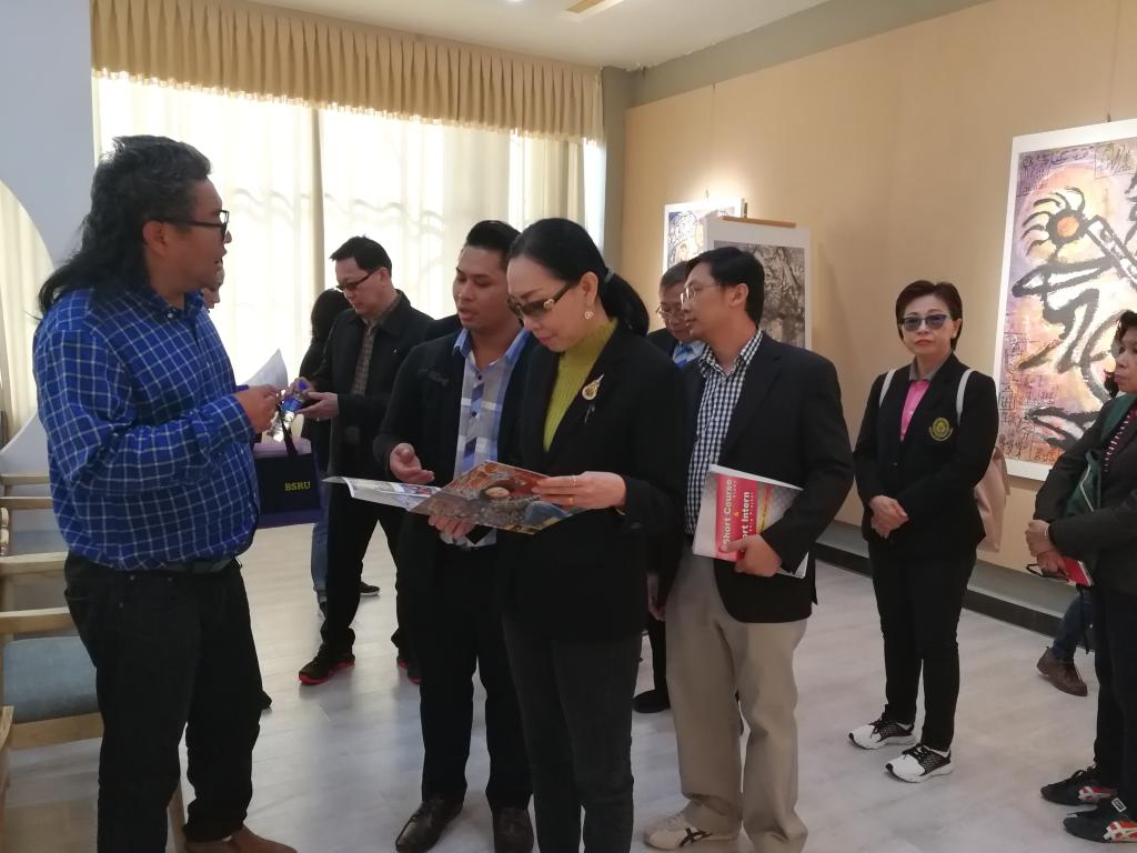 上午,beat365党政办副主任兼外事办主任杨文良、学校理事会秘书长袁野带校长一行参观了高山植物馆和东巴艺术学院滇西北民族艺术传承基地。东巴艺术学院院长和爱东教授为泰方讲解东巴艺术作品。泰方校长及老师们对beat365的人文教育和艺术教育给予了很高的评价。