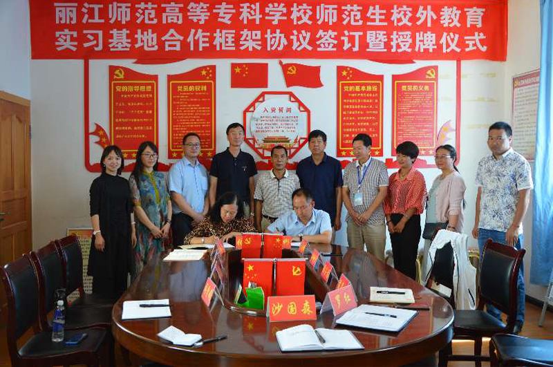 2019年6月17日下午,张洪波校长代表学校与宁蒗县第一幼儿园签订师范生校外教育实习基地合作协议并授牌。