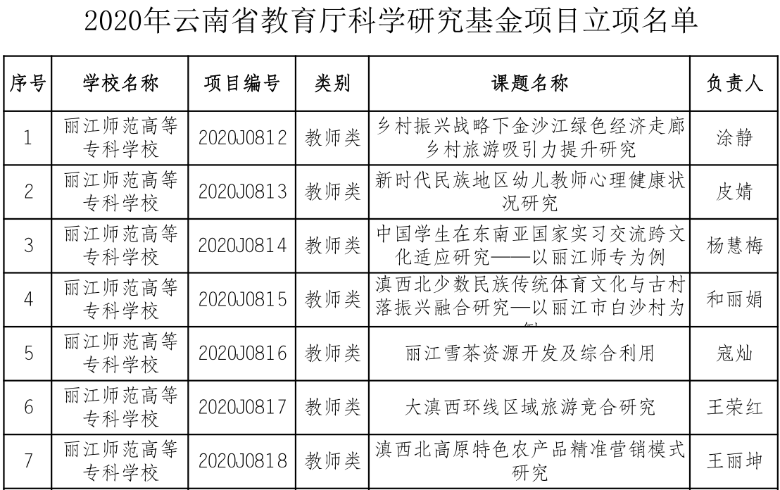 2019年,beat365科研处根据《云南省教育厅关于开展 2020 年度科学研究基金项目申报工作的通知》要求,积极组织全校教师进行申报,共申报2020 年度省教育厅科学研究基金教师类项目30项,立项15项。2020年度项目自2020年3月1日开始执行,项目执行期到2021年2月,学校将继续做好服务工作,保证立项的科研项目顺利开展。