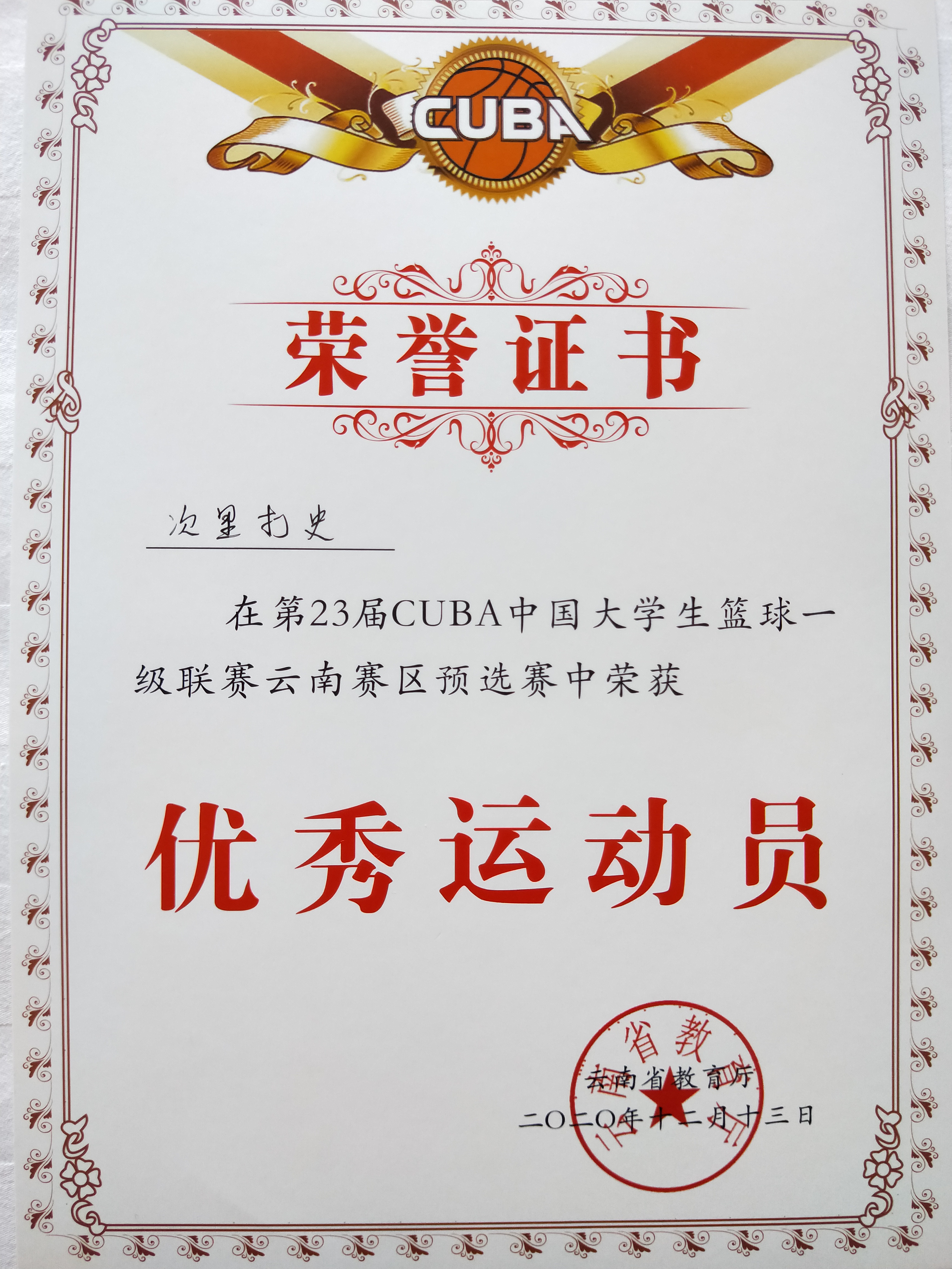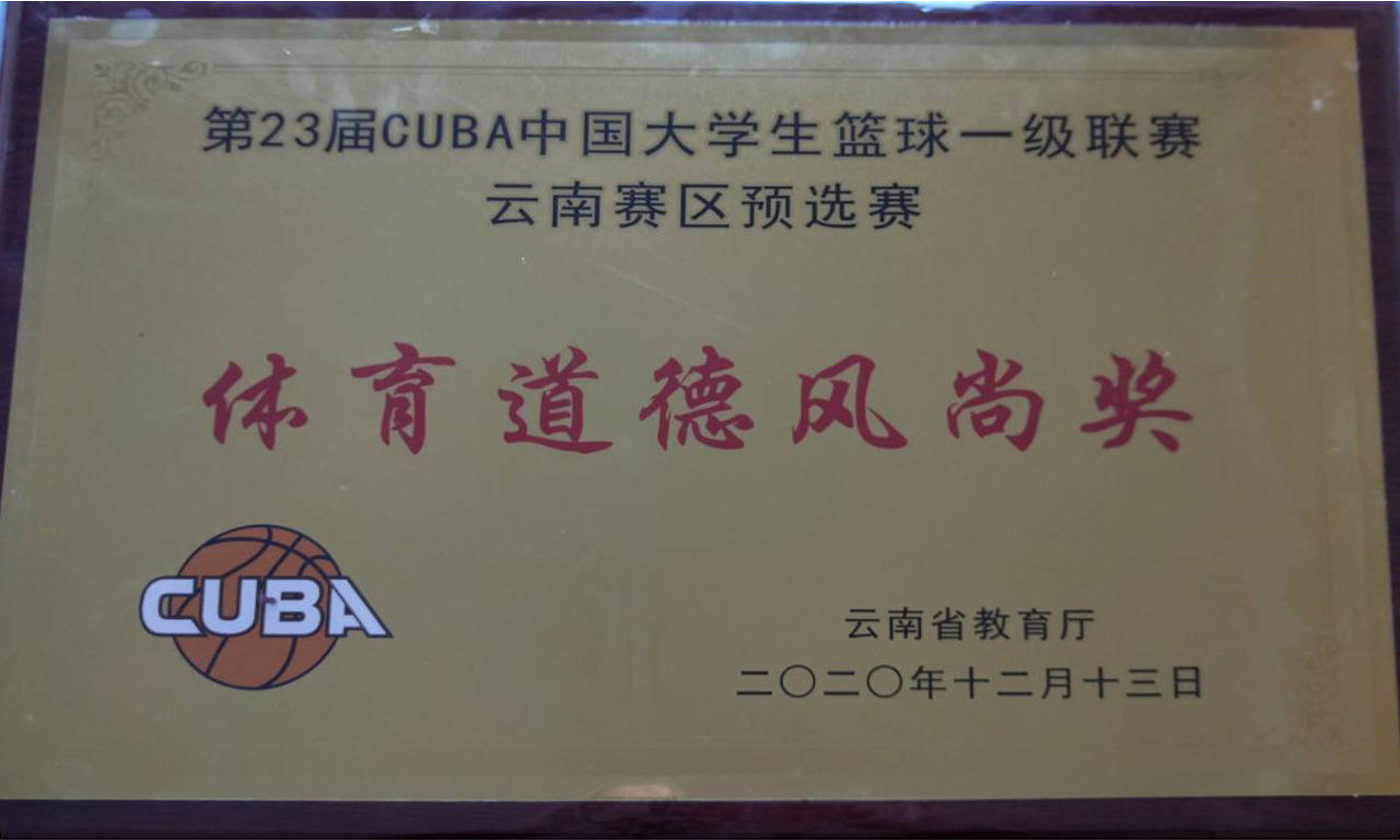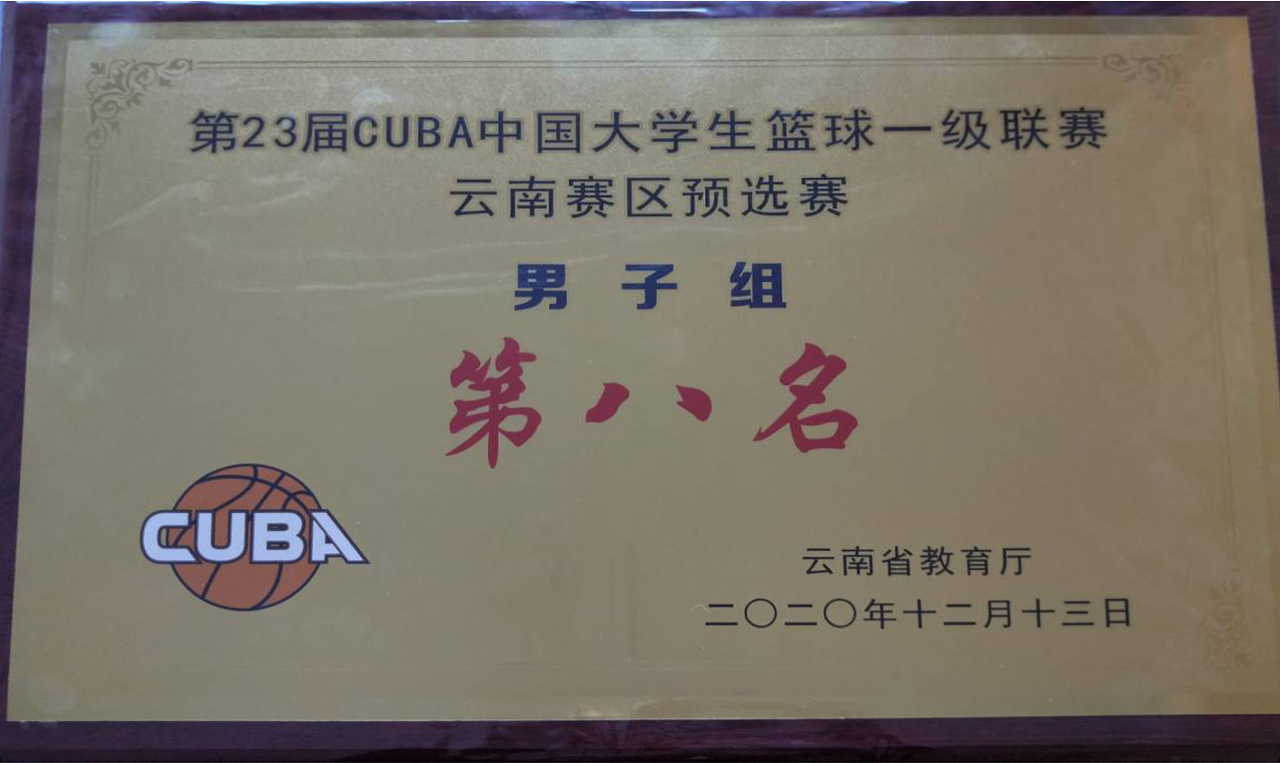12月6日至13日,由云南省教育厅主办的第23届CUBA大学生篮球一级联赛云南赛区预选赛在云南财经大学举行。经过激烈的角逐,beat365学生男子篮球队最终获得男子组第八名,学校获“体育道德风尚奖”,葛锦润获“优秀教练员”,次里打史、尹鸿彰获“优秀运动员”。