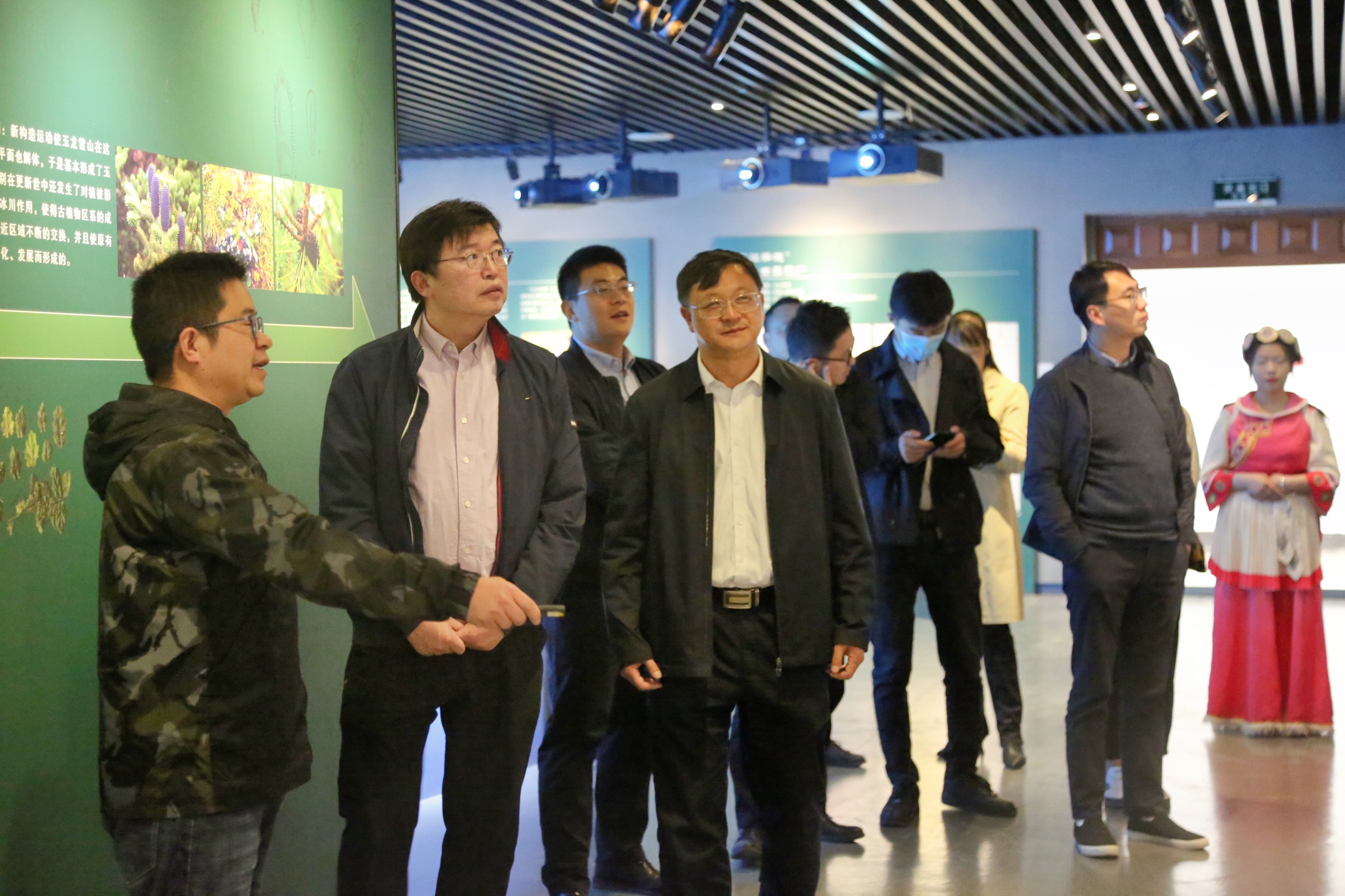 魏高明副书记一行首先来到图书馆,参观学校高山植物标本馆,听取讲解员介绍丽江地质地貌形成过程、高山植物标本的特征,了解丽江植物种群及民族多样性。