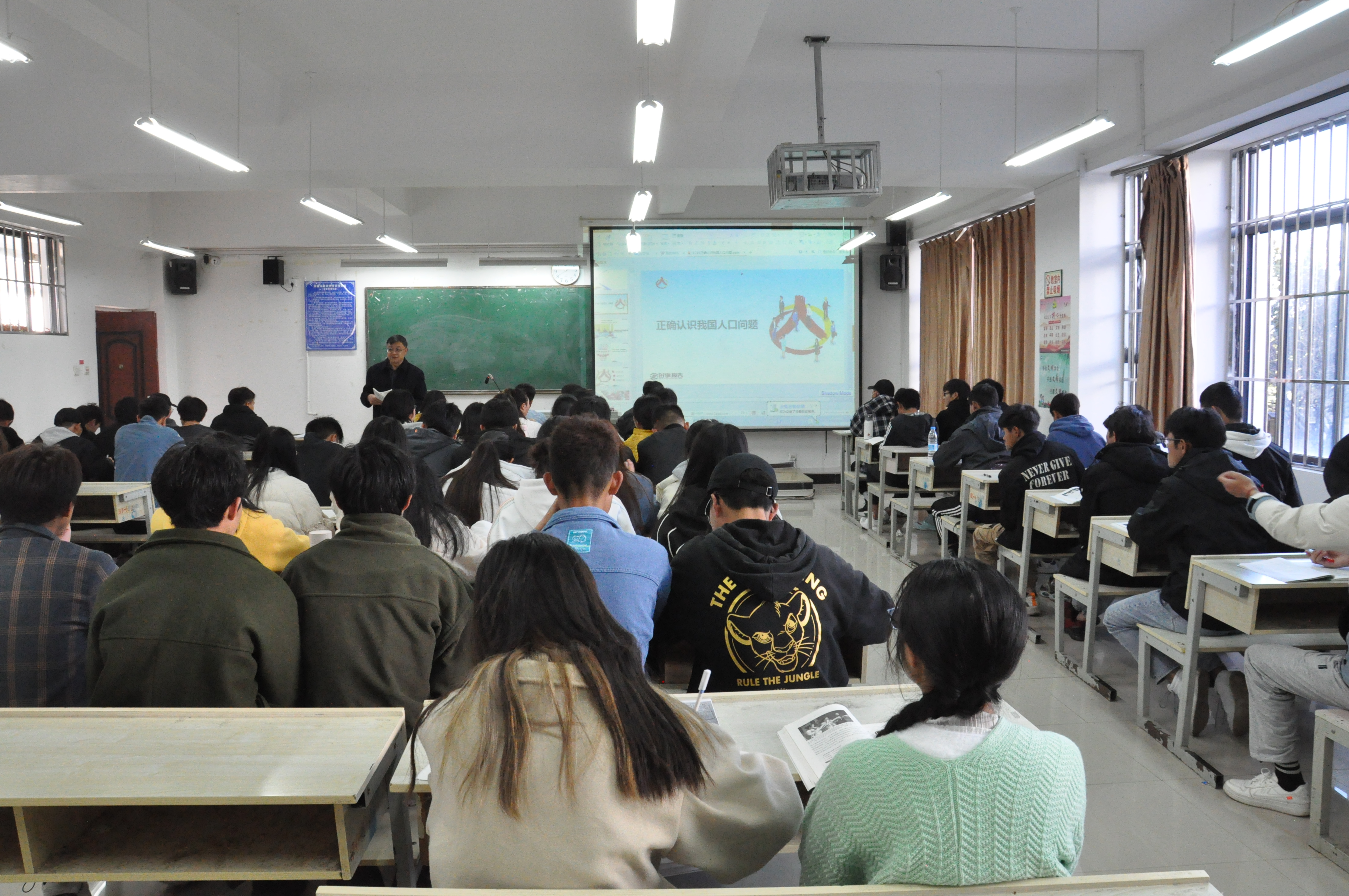 12月16上午,学校党委副书记、校长毕天云在教学楼228给2021级供用电技术班、2021级物联网应用技术班学生讲授《正确认识我国人口问题》形势与政策课。
