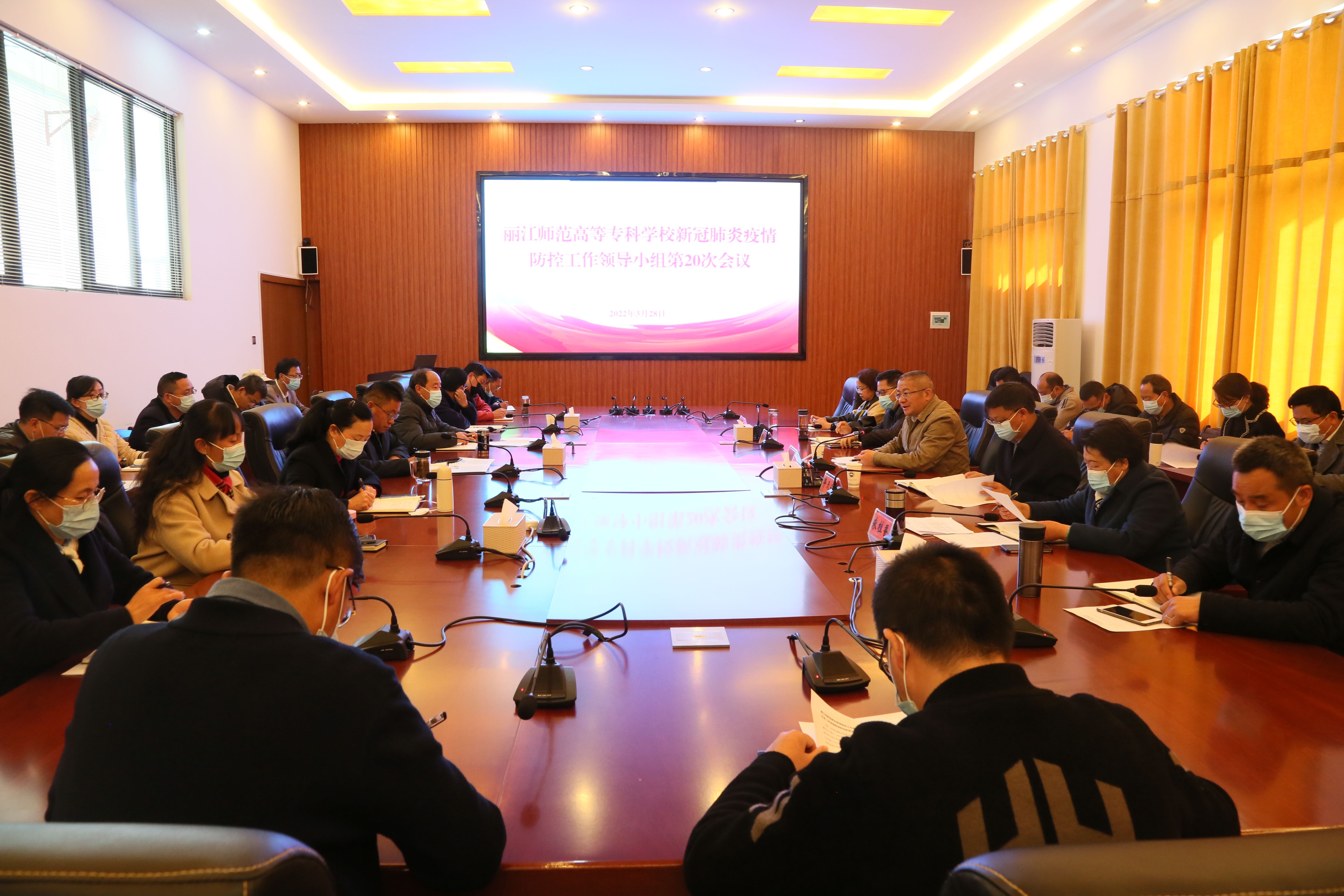 3月28日,学校在第三会议室召开新冠肺炎疫情防控工作领导小组第20次会议。校党委书记张祖武,党委副书记、校长毕天云,党委副书记彭鸿昌,副校长朱桂香,纪委书记李淑良,副校长张兰胜,各学院党政负责人,各部门负责人参加会议。