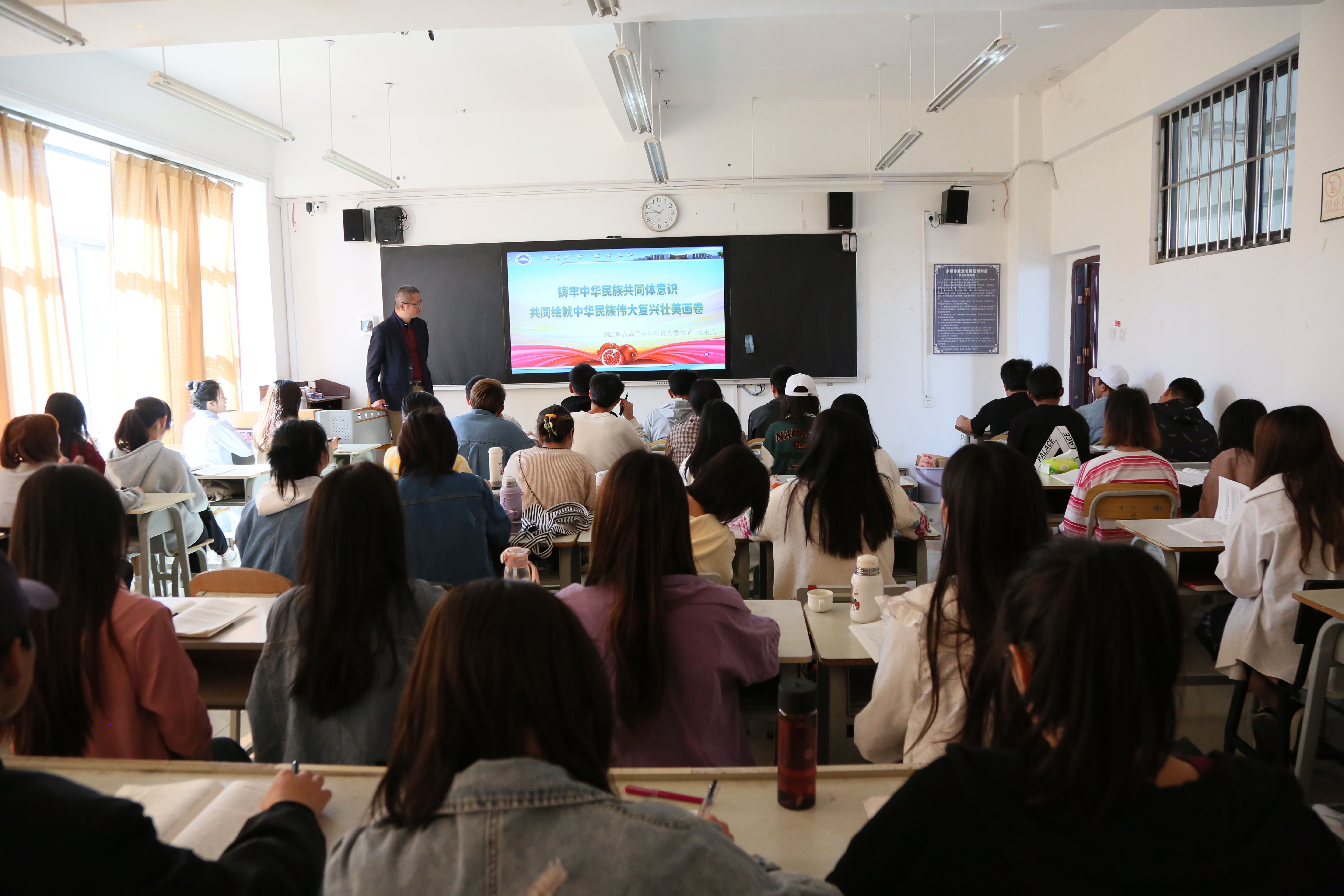 张祖武希望同学们要学习杰出校友张桂梅的爱岗敬业、无私奉献、坚毅执着、大爱无疆的精神。在新时代广泛传唱《北京有个金太阳》。本次形势与政策课,学生们进一步深刻认识到了铸牢中华民族共同体意识的历史必然性、极端重要性和现实针对性,大家纷纷表示,全面建设社会主义现代化,一个民族都不能少,一个民族都不能掉队,要从党的百年奋斗征程把握现阶段民族工作的历史方位和重要使命,共同绘就中华民族伟大复兴壮美画卷。