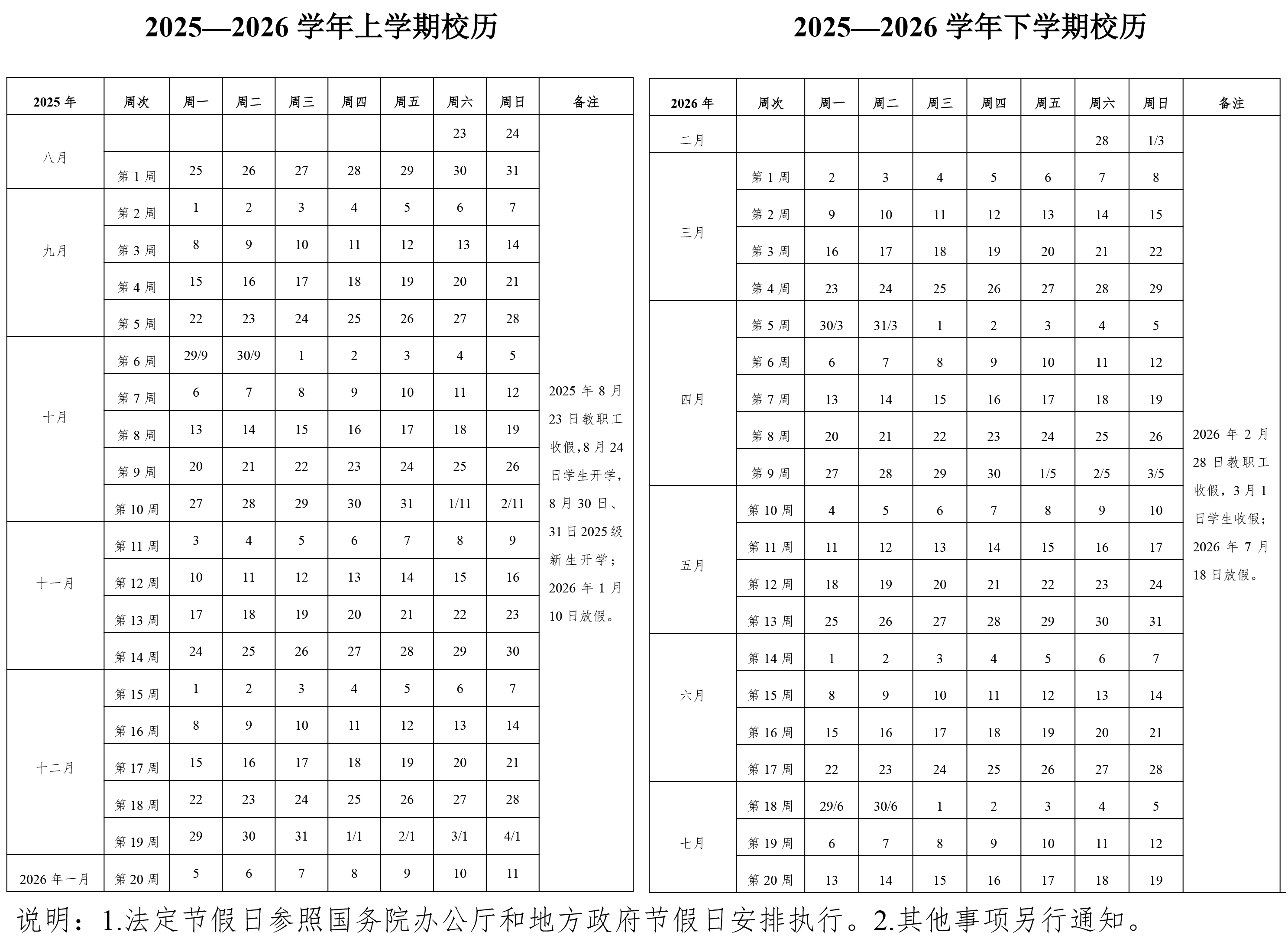 beat365在线唯一官网2025—2026学年校历