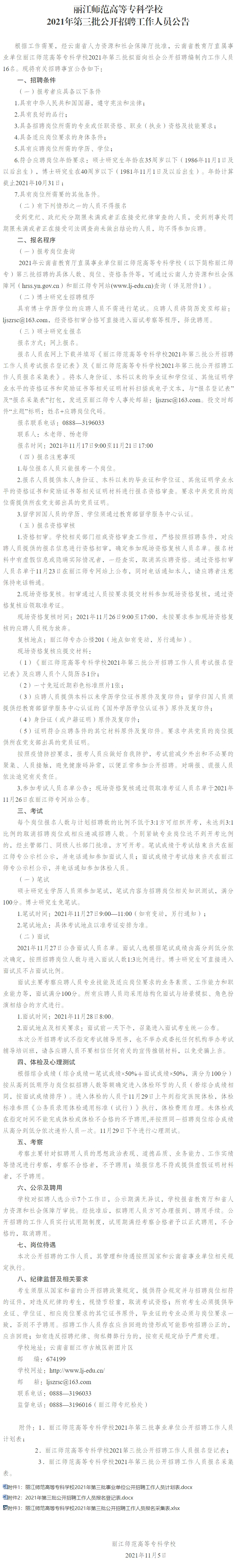 丽江师范高等专科学校2021年第三批公开招聘工作人员公告