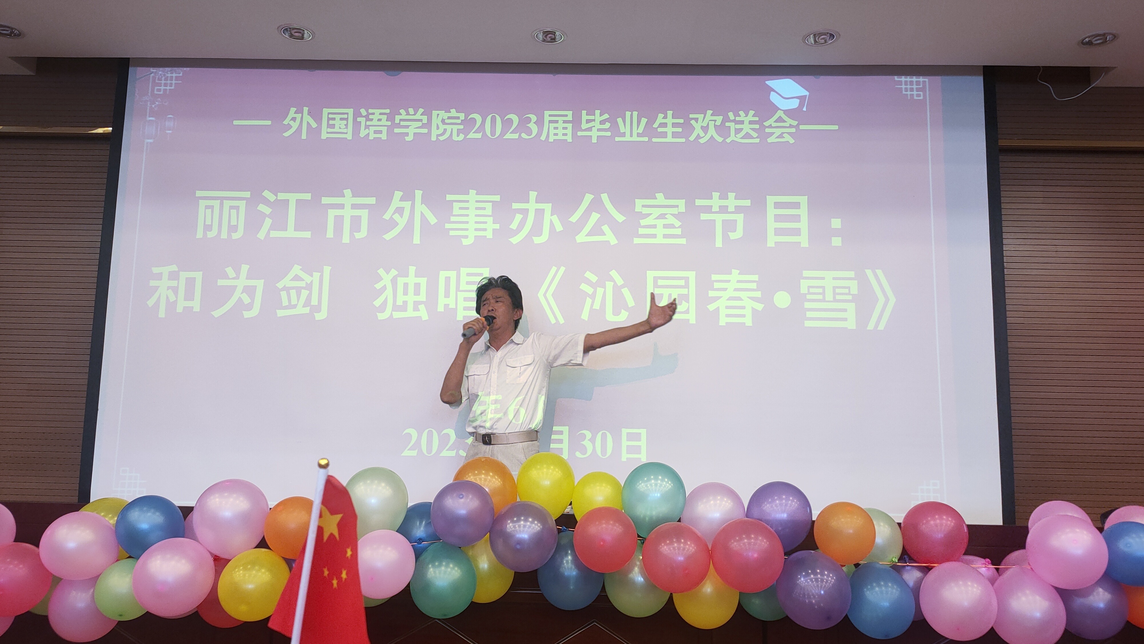 外国语学院院长段平华寄语2023届毕业生:请记住丽江师专杰出校友张桂梅老师的精神:只要还有一口气,我就要坚持下去!请记住陪伴你们走过三年大学生活的外国语学院的英力克情怀:一切为了学生的成长。祝愿你们未来的道路充满挑战和幸福。希望同学们多年以后都能够说:我们都很幸福。更希望有的同学能够说:我拥有的幸福很大。May you fail and be happy!Do come back and see us some time, no matter who you will become! We are always here waiting for you!