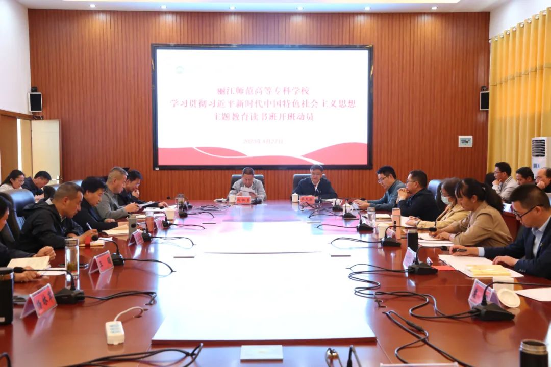4月27日,丽江师范高等专科学校学习贯彻习近平新时代中国特色社会主义思想主题教育读书班开班。省委第十四巡回指导组组长赵祖莹到会指导。学校党委书记毕天云主持会议并作动员讲话。