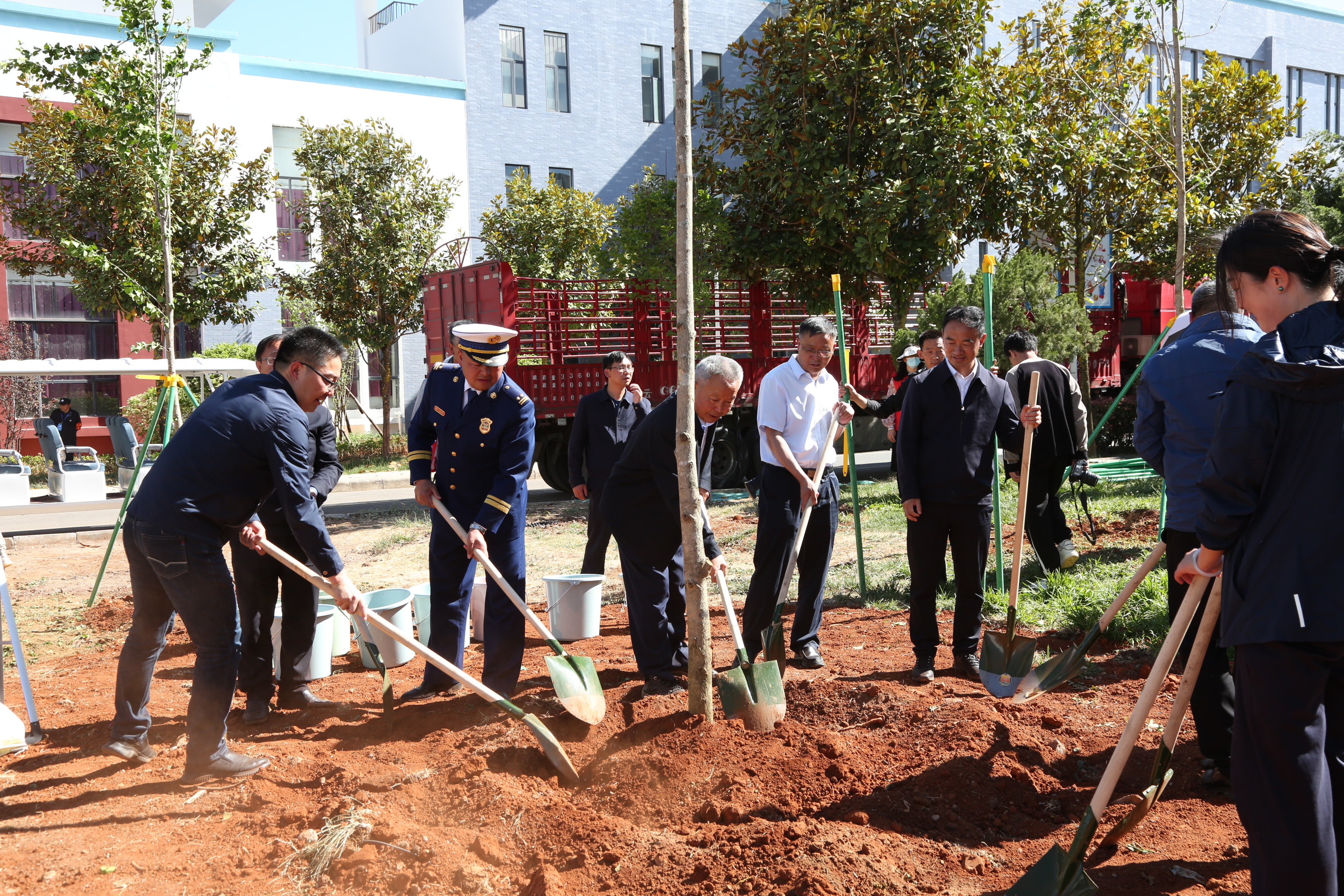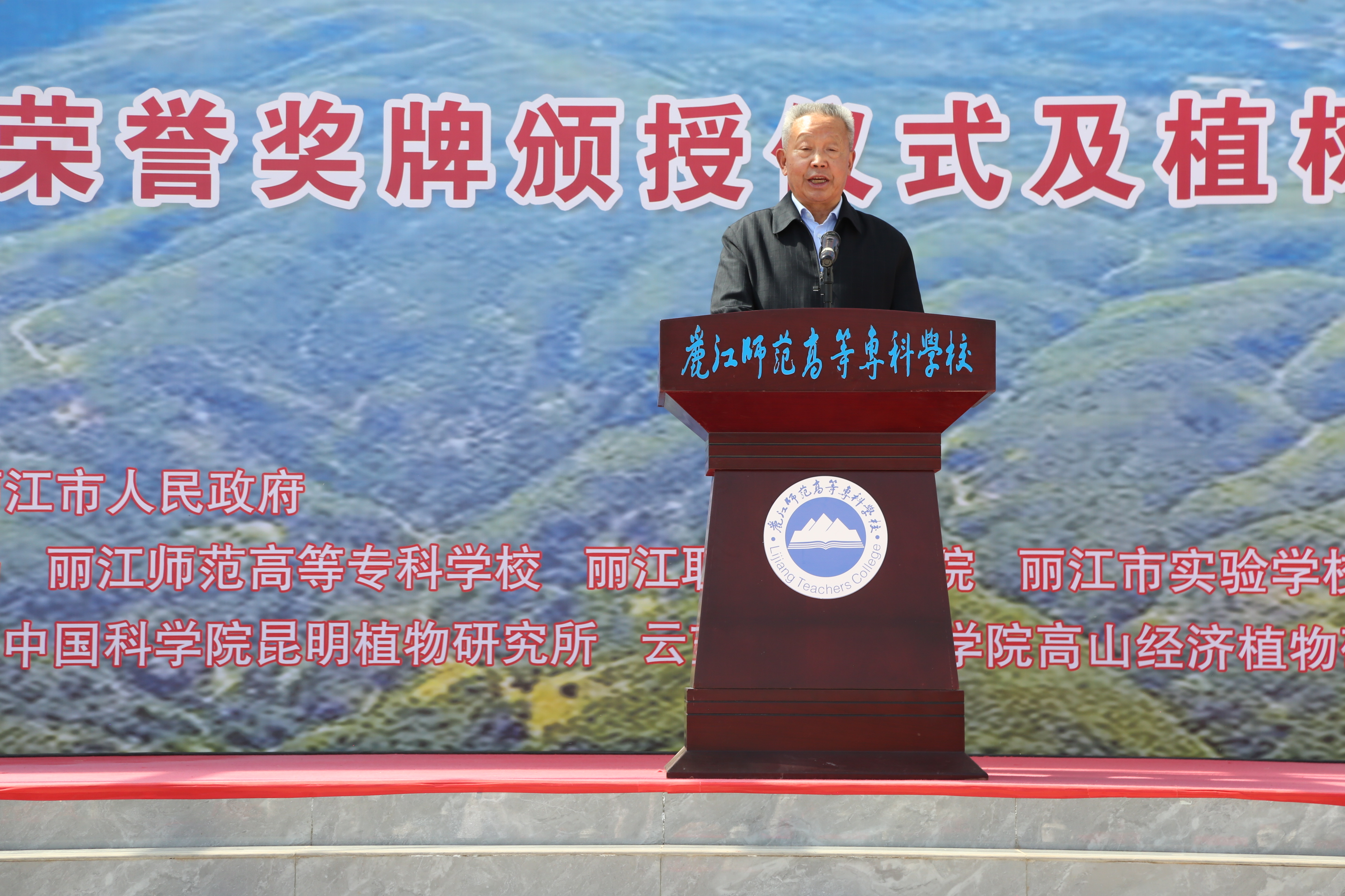 荣誉奖牌颁授仪式结束后,与会领导、爱心捐赠单位代表和师生一起进行了丽江师范高等专科学校杨善洲纪念林植树活动。