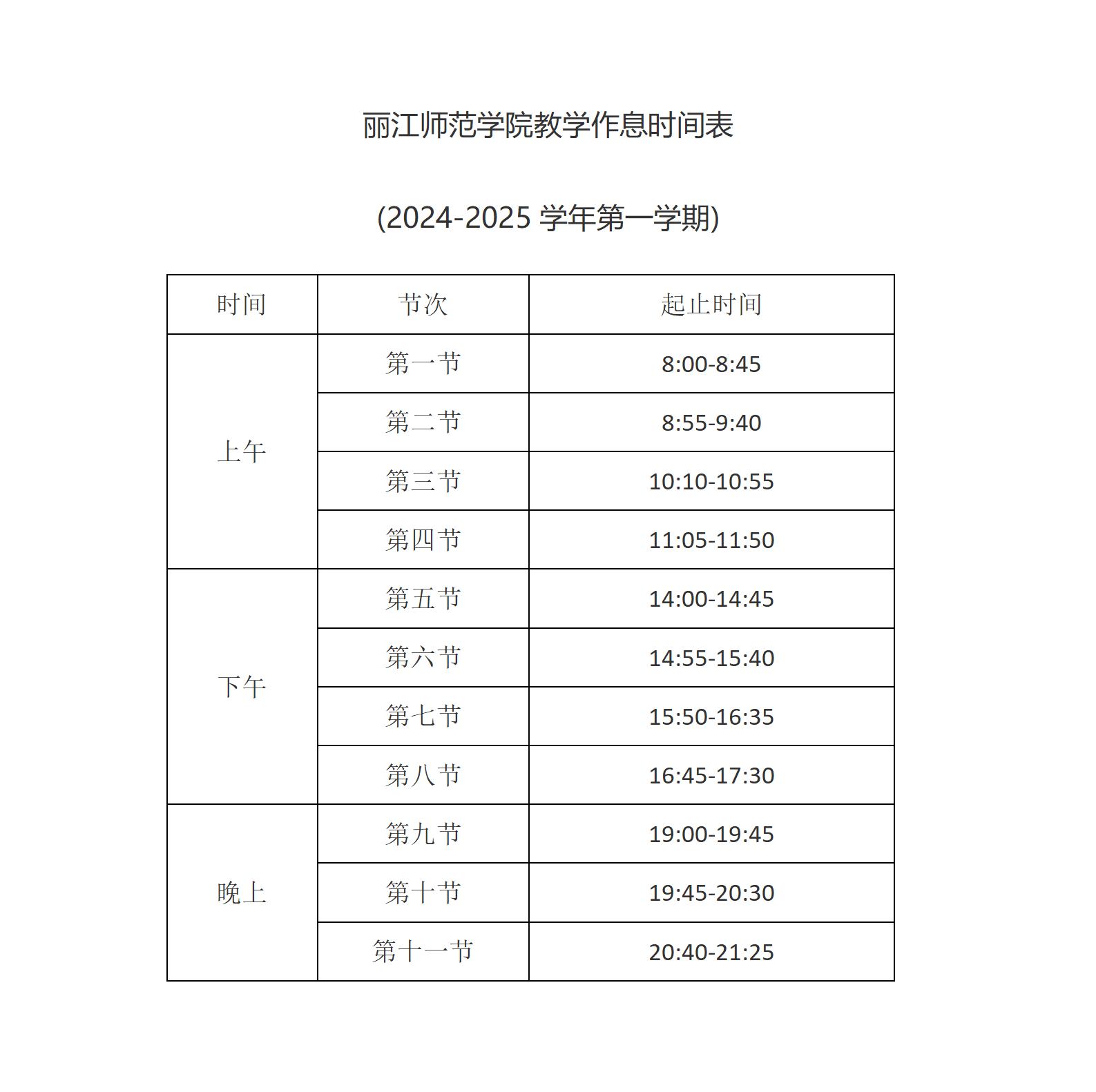 丽江师范高等专科学校教学作息时间表(2023-2024学年第二学期)